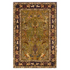 Anudada a mano en lana procedente de la India hacia 1890-1900, esta alfombra antigua de 10 x 16 connota un diseño de alfombra polonesa de transición, ambos célebres entre los linajes...