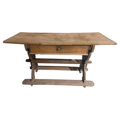 Mesa Consola Plegable Española de Principios del Siglo XX con Camilla de Hierro y 3 Cajones
