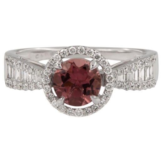 Precioso colgante con un zafiro amarillo de Sri Lanka talla redonda de 2,11 quilates en el centro, rodeado de un halo de diamantes blancos talla redonda brillante de 0,14 quilates.