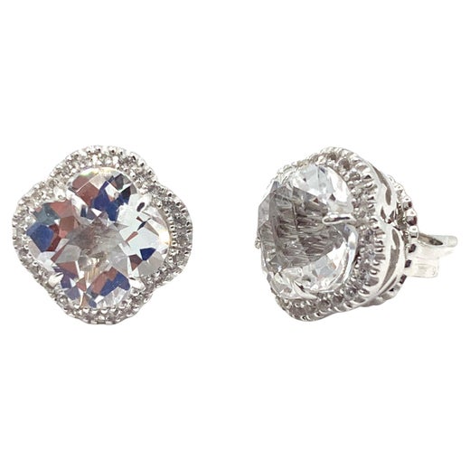 Los pendientes llevan 2 hermosos topacios azul cielo talla esmeralda y 2 lustrosas ...