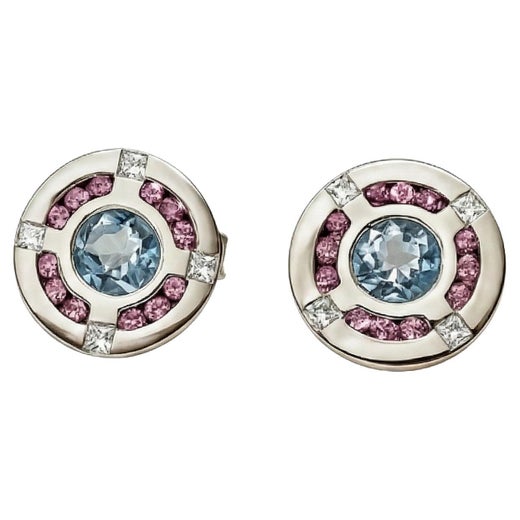 Pendientes de oro de 18 quilates con diamantes y rubíes y esmeraldas y zafiros de origen colombiano