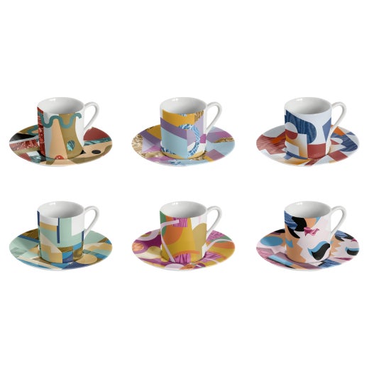 Alchimie, Seis Platos de Postre Contemporáneos de Porcelana con Diseño Decorativo