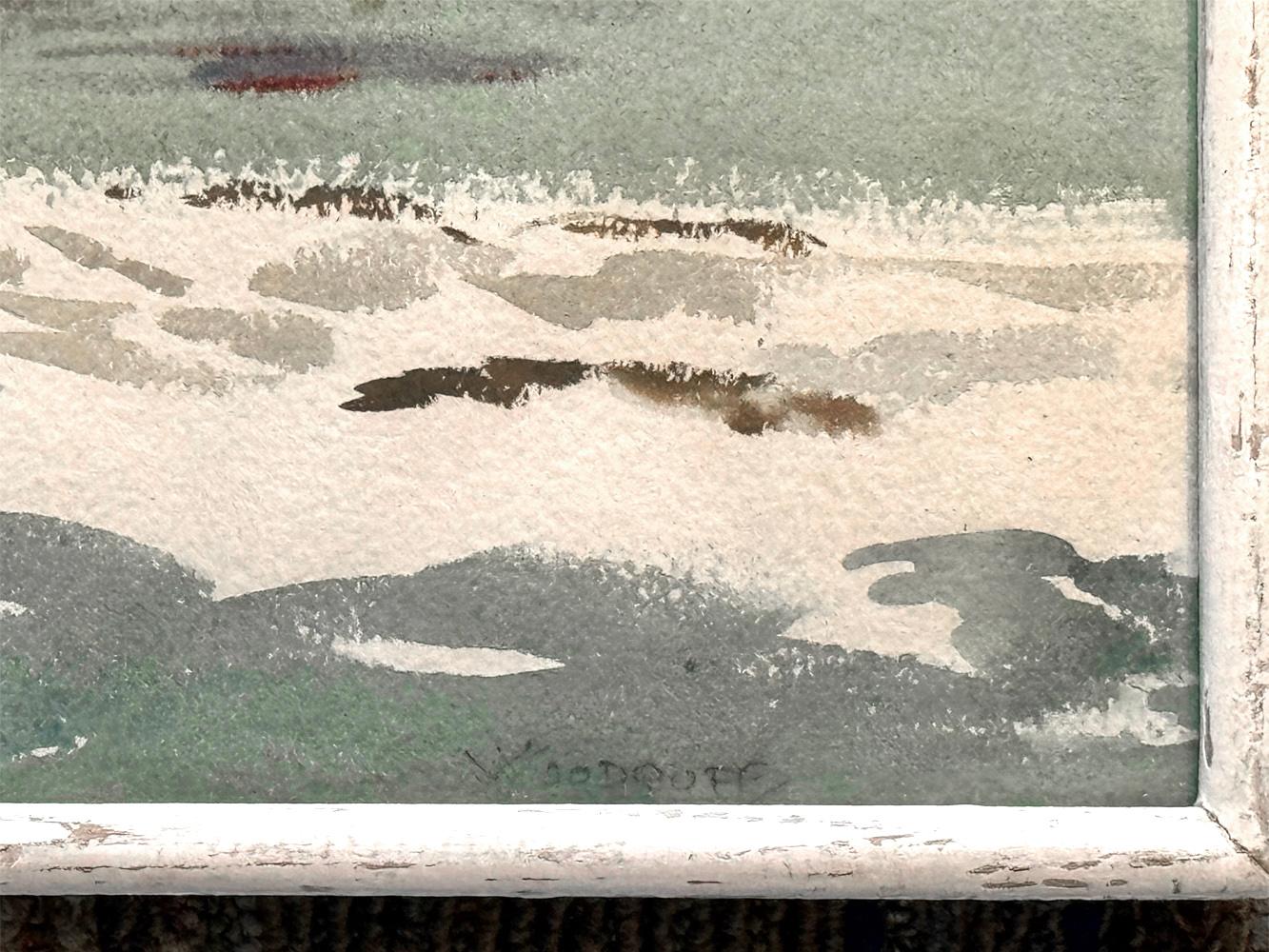 Llena de luz y color, esta acuarela altamente evocadora de Porter Woodruff representa a un grupo de jóvenes tunecinos nadando en la playa del golfo de Hammamet, en Túnez, cerca de su casa. Cerca, otros dos hombres están en una pequeña barca paralela a la orilla. Woodruff era conocido sobre todo por sus pinturas e ilustraciones para la revista Vogue -uno de los cinco ilustradores de moda estadounidenses que trabajaron para la revista-, así como para House