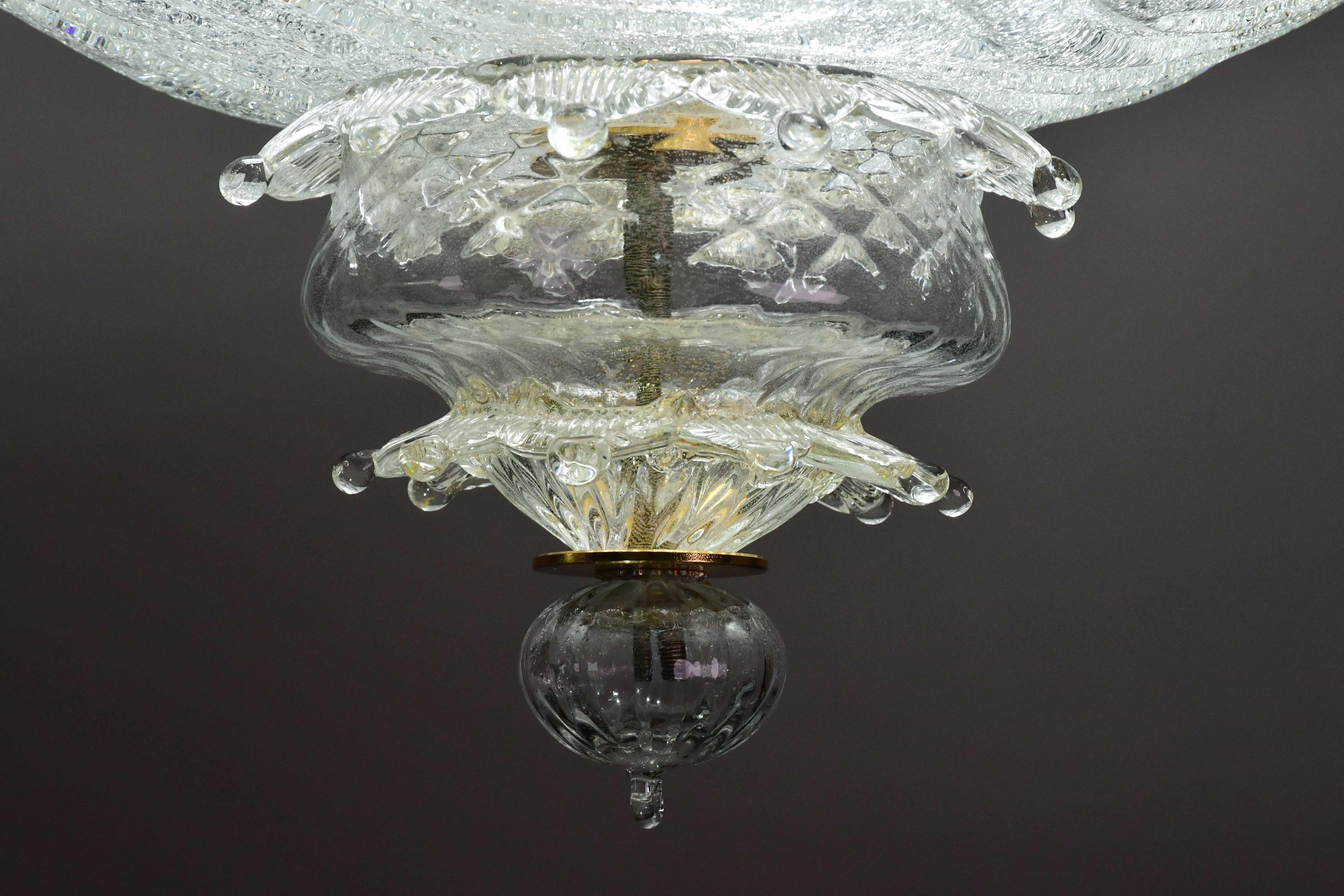 Encantador plafón italiano trasparente de cristal de Murano, Murano, 1970
