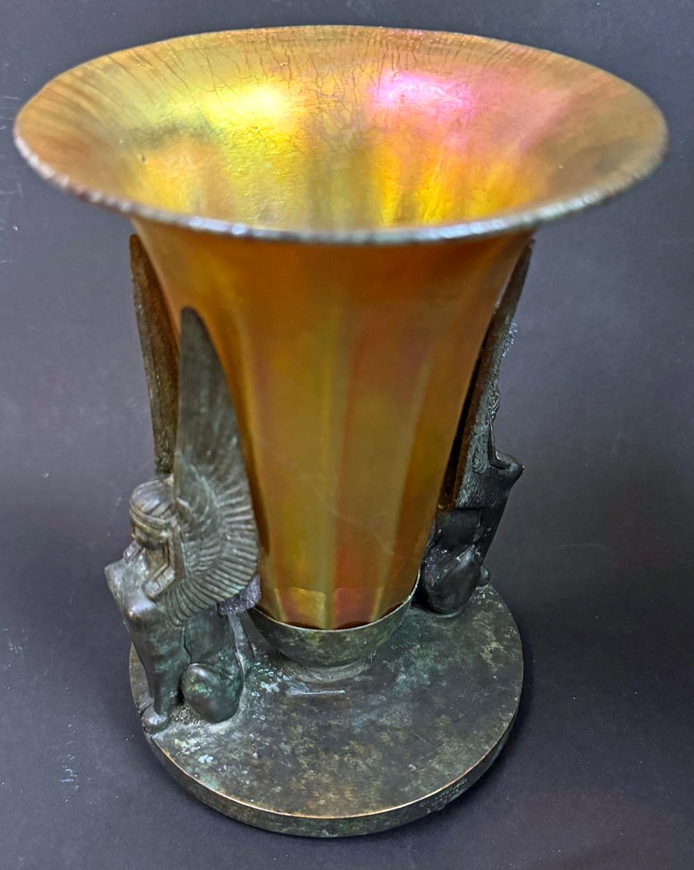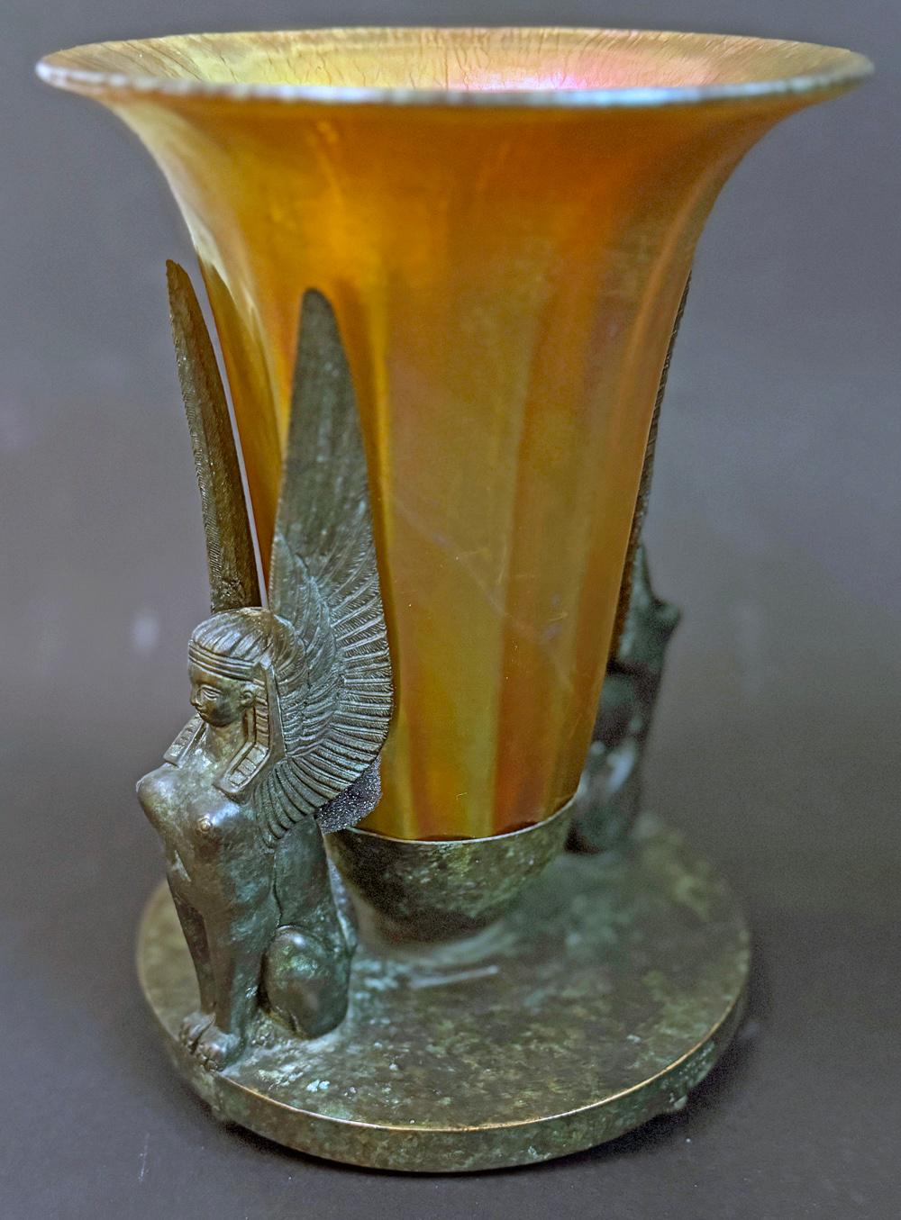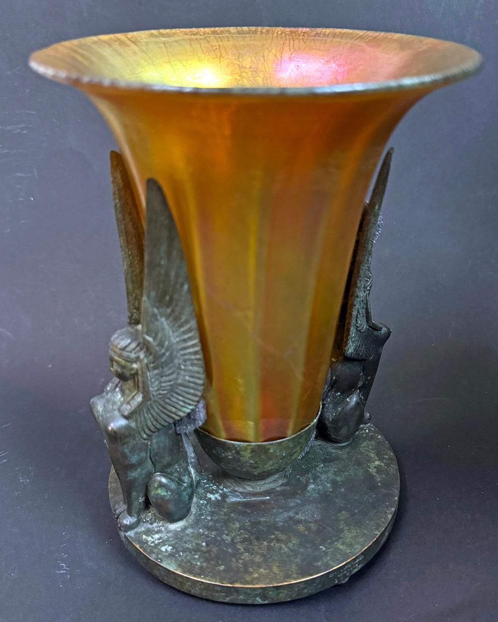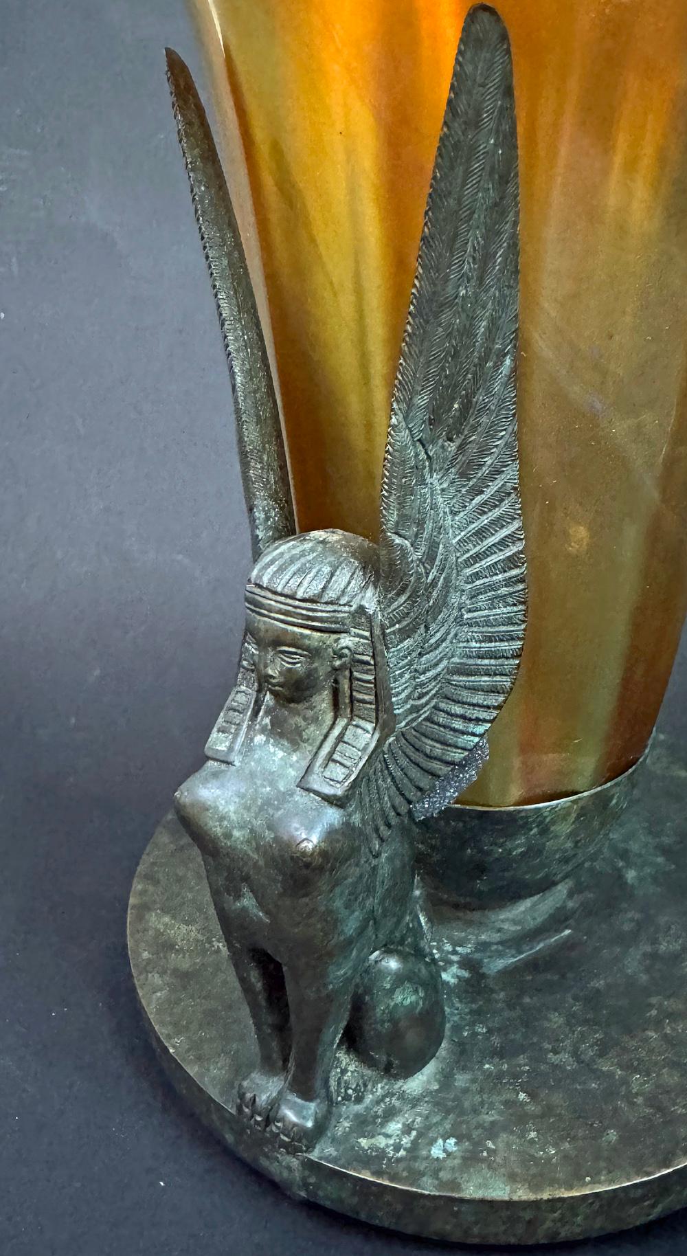 Lámpara de vela de renacimiento egipcio", Lámpara Art Déco de bronce/vidrio, Tiffany Studios