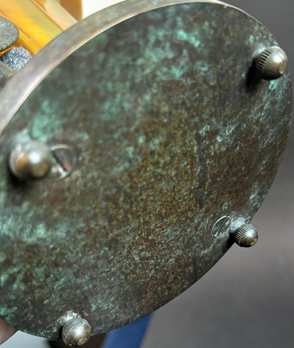 - Estado:Desgaste acorde con la edad y el uso. En general excelente; algunas manchas y decoloración en la pátina de bronce; un pie sustituido.