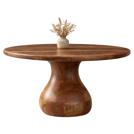 Mesa de Comedor Redonda de Roble Macizo con Textura Tallada a Mano y Base Cónica be Vulpe