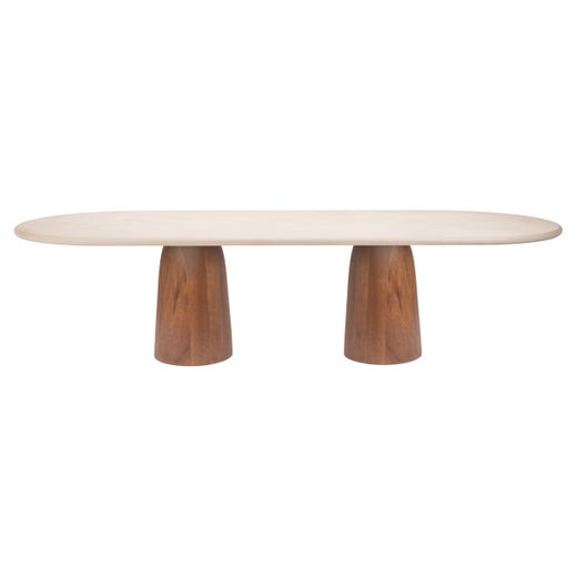 La mesa de comedor Latus está hecha a mano con varias capas de Mortex® sobre una base de madera. Mortex es un yeso natural de primera calidad que lleva años demostrando su calidad en la construcción. Se utiliza en baños, suelos, escaleras, piscinas, etc.