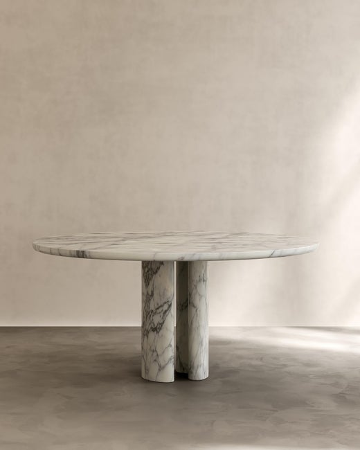 Mesa de comedor artesanal Isola III de mármol arabescato de Paloma Editions