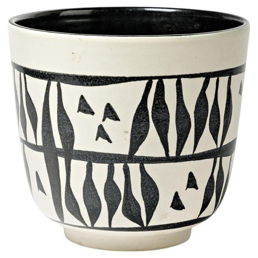 Jarrón Cachepot de cerámica en blanco y negro del siglo XX de Elchinger, 1950