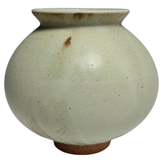 Elegante ejemplo de artesanía clásica escandinava de mediados de siglo. Jarrón de gres hecho a mano con esmalte blanco crema. Fino dibujo de puntos alrededor de la base del cuello y ...