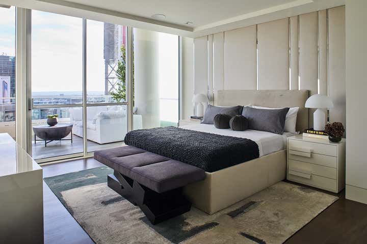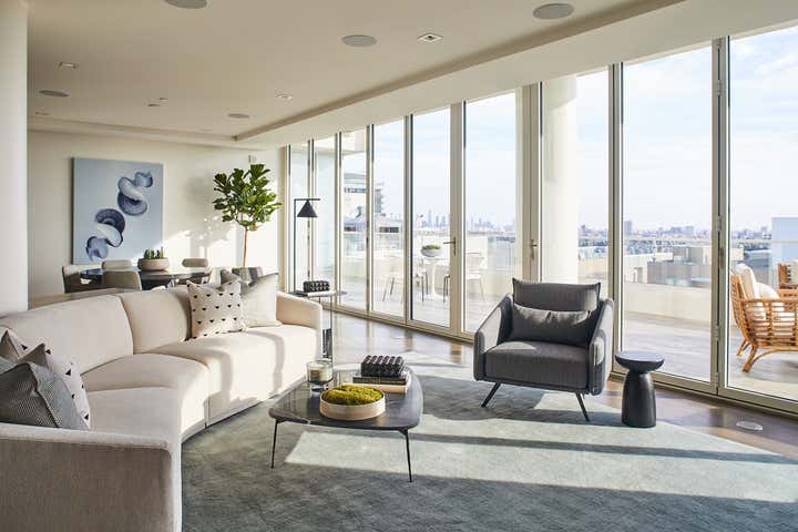 This private sanctuary was inspired by the beach to create a warm, sophisticated home. Natural finishes and furnishings create a serene and modern environment. High ceilings filter abundant California sunshine within the tranquility of the penthouse, while the creative energy of Hollywood buzzes below. The open loft style of the kitchen, dining and living spaces helps to provide functional and easy-flowing living.
