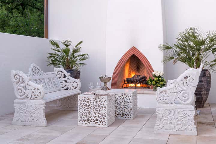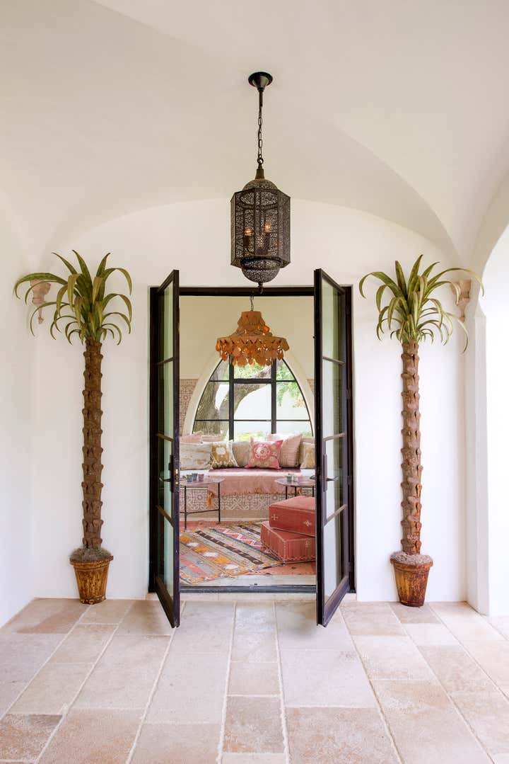 This Spanish Colonial style home is situated in the Highland Park area of Dallas. Built in 2011 for a young family of five, the home is spacious and usable with well thought out and custom details throughout. From the plaster wainscot and fireplace surround in the dining room to the lighting fixtures designed, fabricated and wired locally. Moroccan influences can be seen in the Zellij tiles, each customized to suit their space as well as the hand-turned Mosharabi wooden screens. A careful mix of modern and distinctive vintage furniture from Marrakesh and Madrid as scattered through the home.
