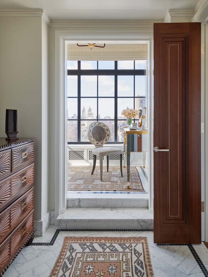 Lee Ledbetter Associates provided full architectural and interior design services for a 2,500-square-foot, three-bedroom residence on the 19th floor of The Carlyle Hotel in New York City. Exterior work included restoring three terraces, removing a large 1980s greenhouse, reopening part of the west terrace and adding two steel conservatories to enhance light and views toward Central Park. Inside, the home features custom walnut millwork with nickel and antique mirror detailing, a bespoke kitchen and breakfast room and thoughtfully selected furniture and art pieces that blend classic modern design with custom creations.