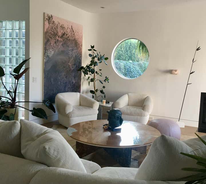 90% of the furnishings in this home were fully custom. The house was a backdrop for an extensive art collection. Make-up colors, Michael Smith, and Moderne architecture inspired us as we made our design choices.