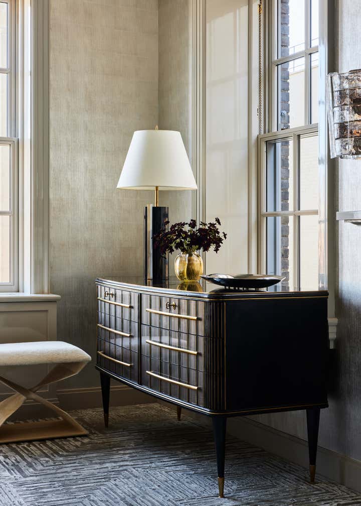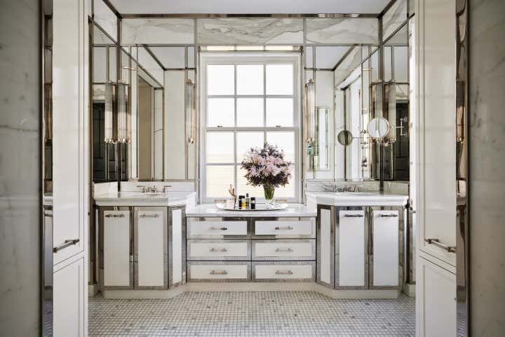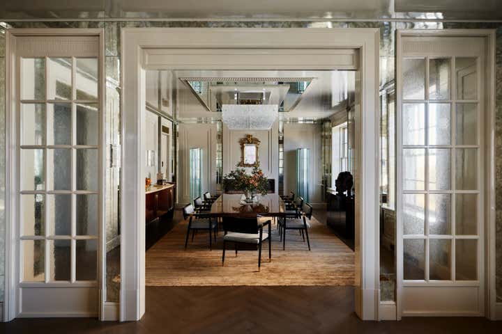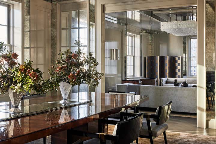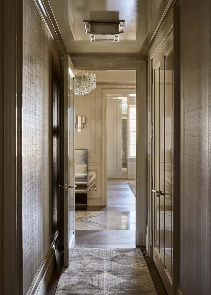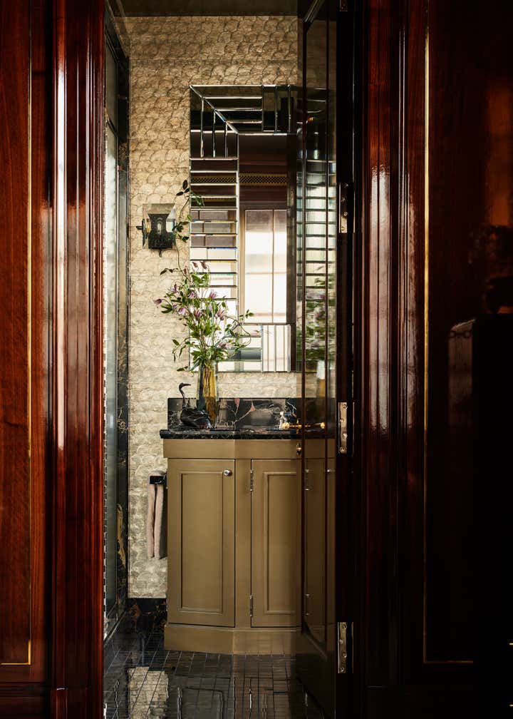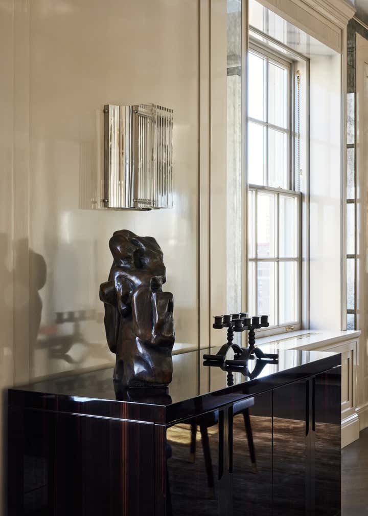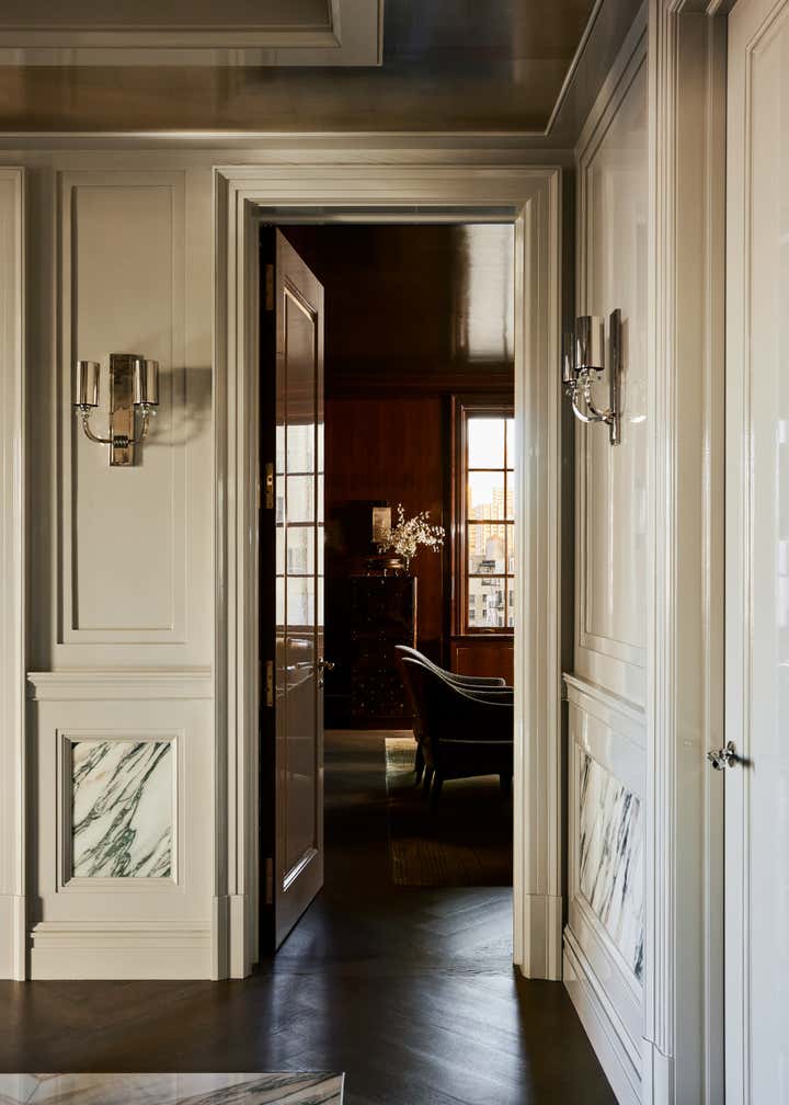No detail left unconsidered, this residence shimmers with refined elegance. Cool and crisp tones meet warm and luxurious, in a delicate counterpoint. Rare wood species, polished paneling, luminous lacquer, and nickel plating speak in harmonious dialogue. Art Deco influences of gilded accents and geometric forms lend enduring allure. The past and future meet in this shimmering ode to fine materiality and glamor.