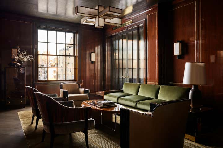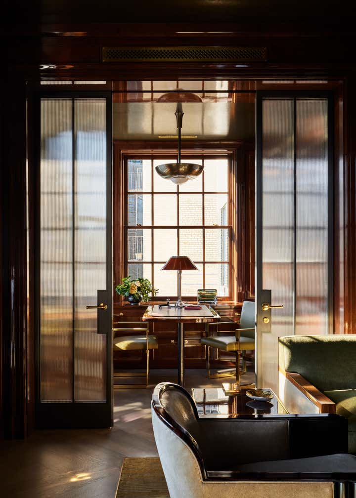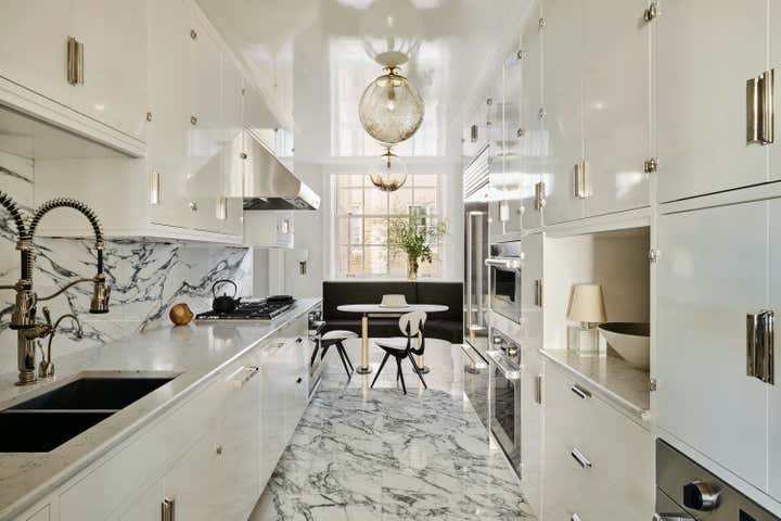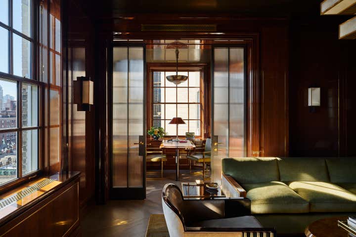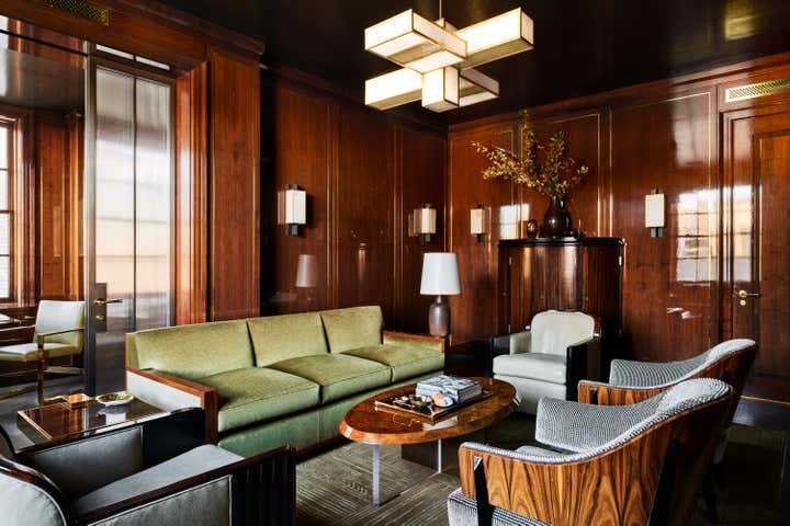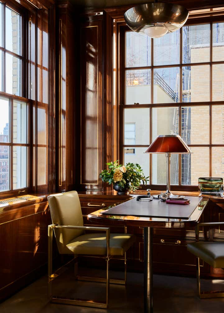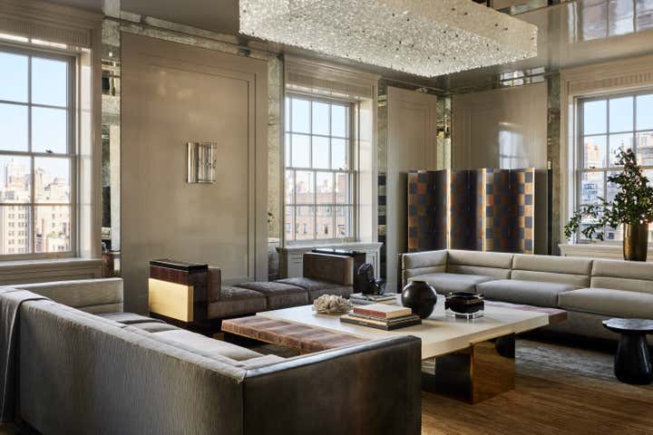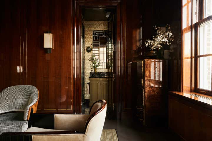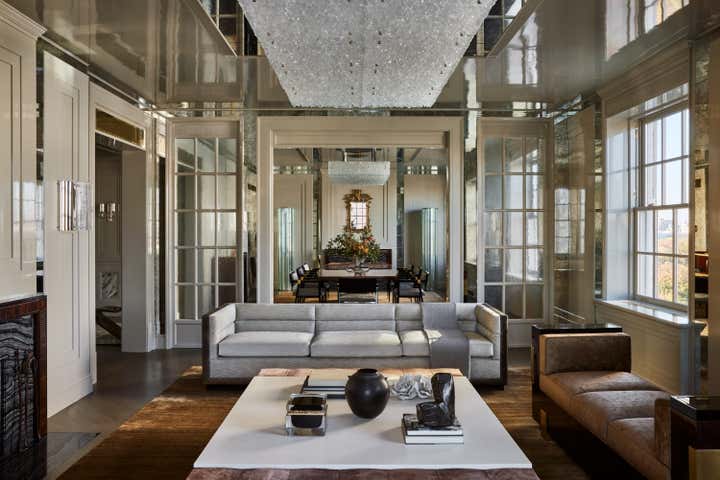 No detail left unconsidered, this residence shimmers with refined elegance. Cool and crisp tones meet warm and luxurious, in a delicate counterpoint. Rare wood species, polished paneling, luminous lacquer, and nickel plating speak in harmonious dialogue. Art Deco influences of gilded accents and geometric forms lend enduring allure. The past and future meet in this shimmering ode to fine materiality and glamor.