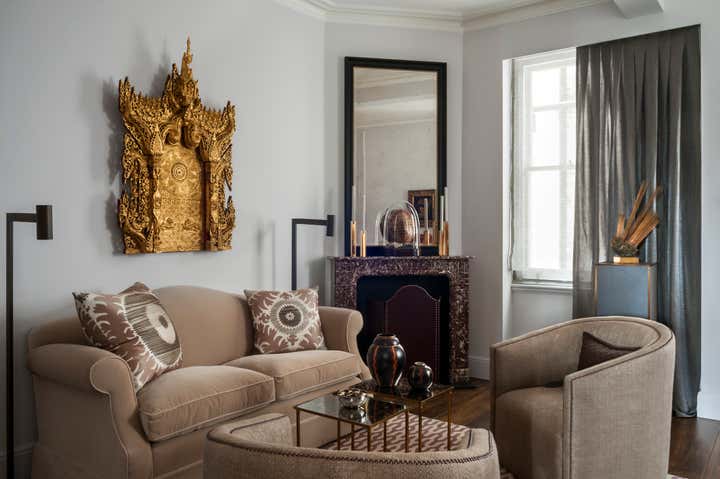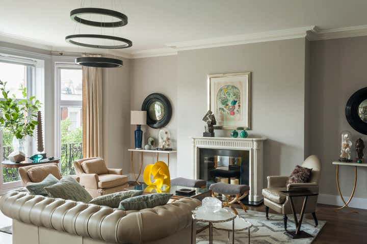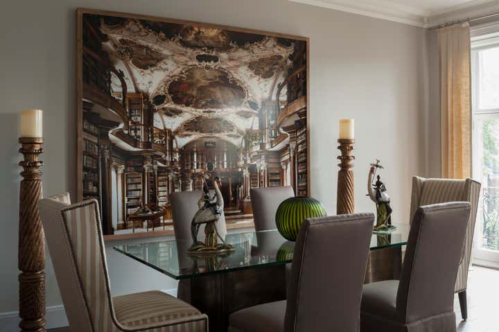 Family home in London. The client wanted a comfortable space with a large kitchen and family area to enjoy time together. The color palette is neutral and it provides a background for the art and objects collected during their travels as well as for the objects curated by us.