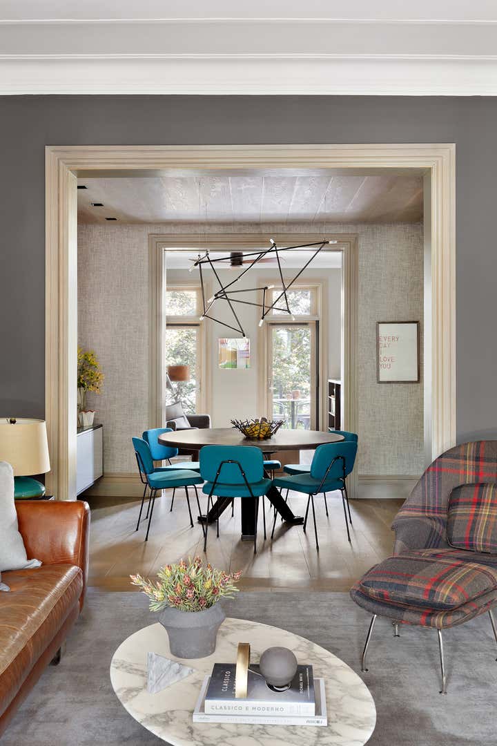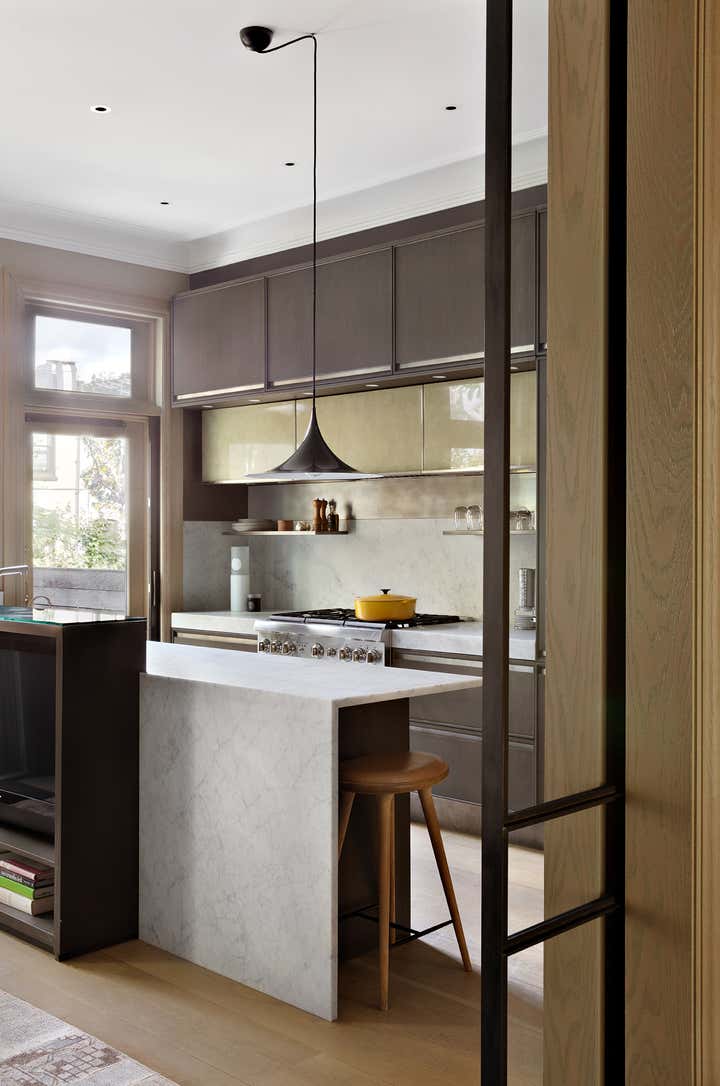 The warm, masculine home of Workshop/APD founding principal Matt Berman and his family carefully balances the preservation of the historic town house s gorgeous detailing with modern interiors. A masterful mix of statement lighting, art and a highly-personal curation of furnishings, books and decorative objets bring the home to life. A striking modern kitchen leads connects to the back garden, creating an oasis in the city.