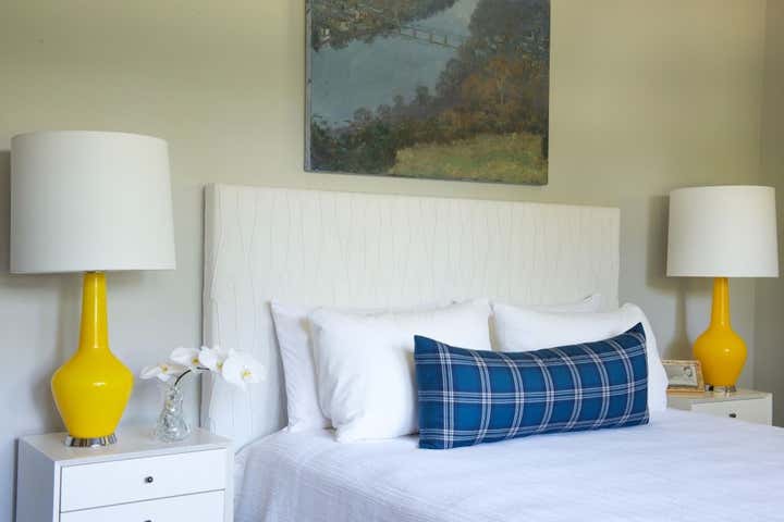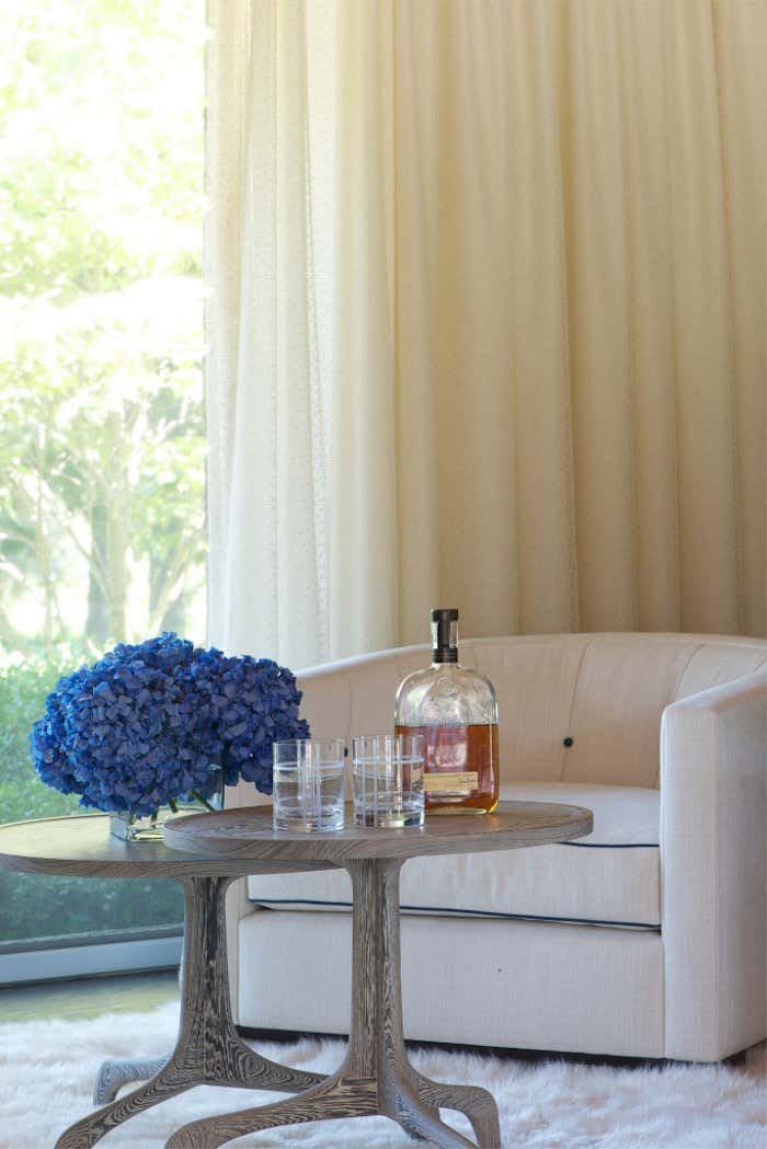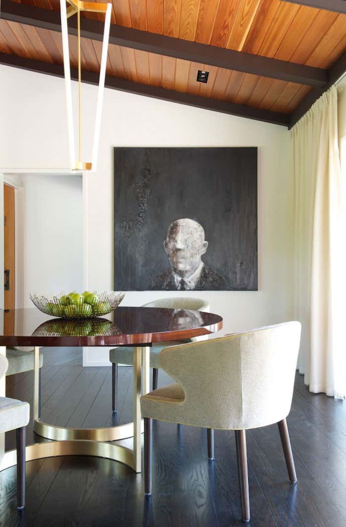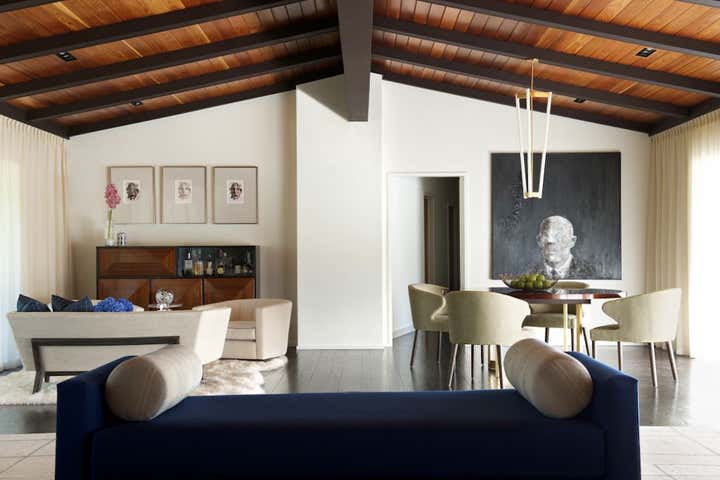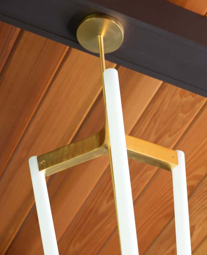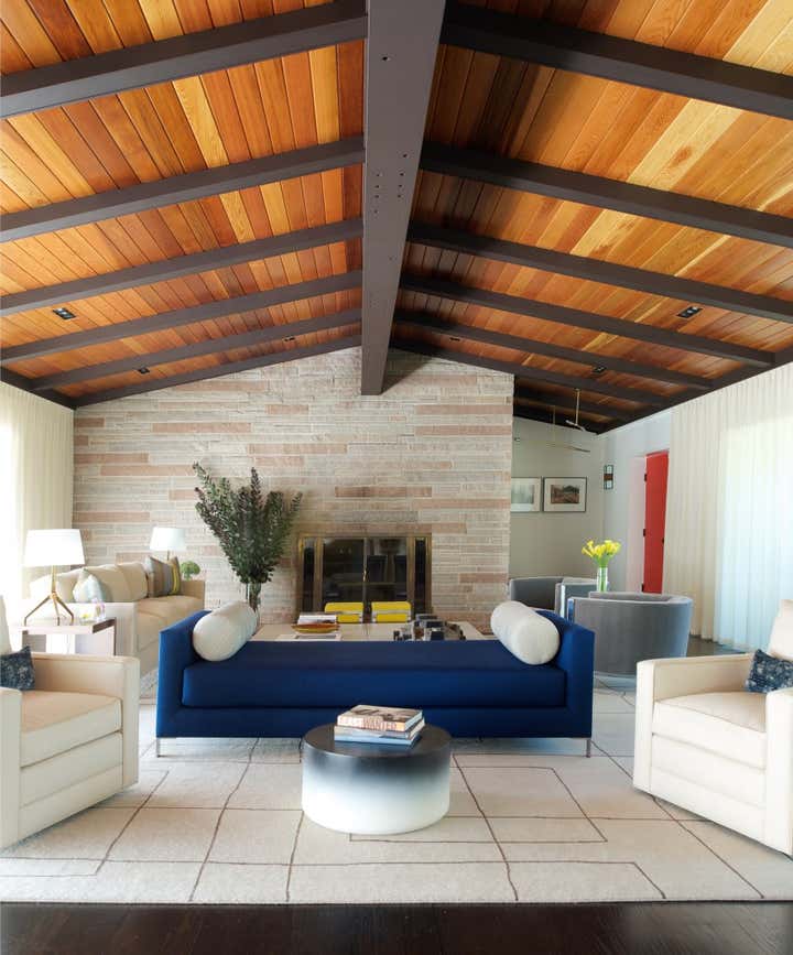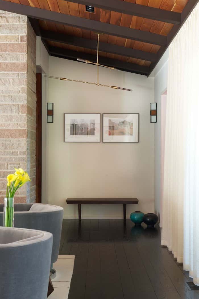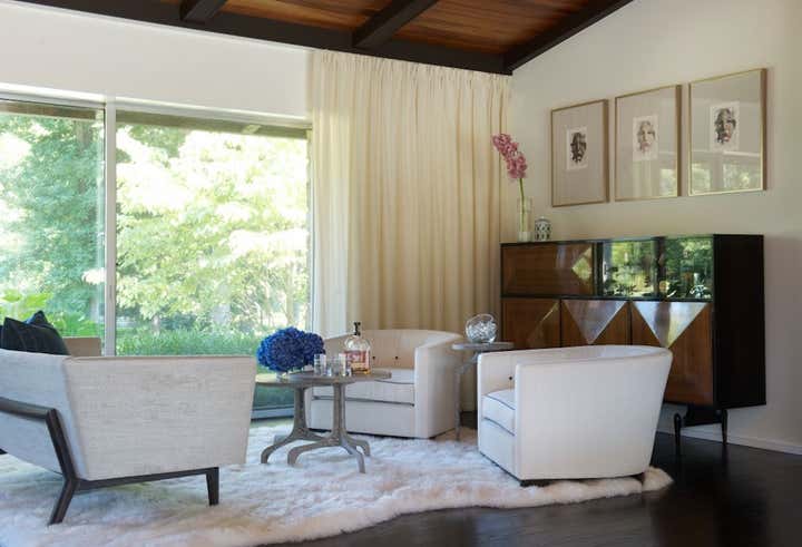 Purchased as a weekend getaway, this Mid-Century home is only an hour’s drive outside of New York City. Situated on five bucolic acres along the Delaware River, the floor plan and landscape are what drew the clients to the home. Original interior details left the home looking dated so the goal was to retain the Mid-Century charm while creating warm and fresh interiors. In the Great Room cedar tongue-and-groove panels were added to the ceiling to warm up the space while the battens were ebonized to match the newly refinished floors. Heavy paneling was removed from the walls and around structural steel to lighten the space. Contemporary and vintage furniture was purchased with comfort and entertaining in mind. Pieces by local designers and artists work to round out the design and truly turn this weekend getaway into a home.
