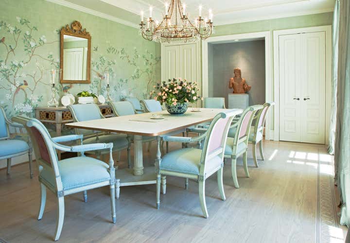 This sprawling neo-colonial home in Potomac, Maryland was in the perfect location. The owners had been looking in the area, and succeeded in finding a their dream home in an exclusive community near to their family and friends. The couple asked Solis Betancourt Sherrill to rework the house inside, making it a chic but family-friendly environment for their two young girls. The wife wanted a laid back elegance, with a somewhat monochromatic palette of muted grays, lavenders, and greens.