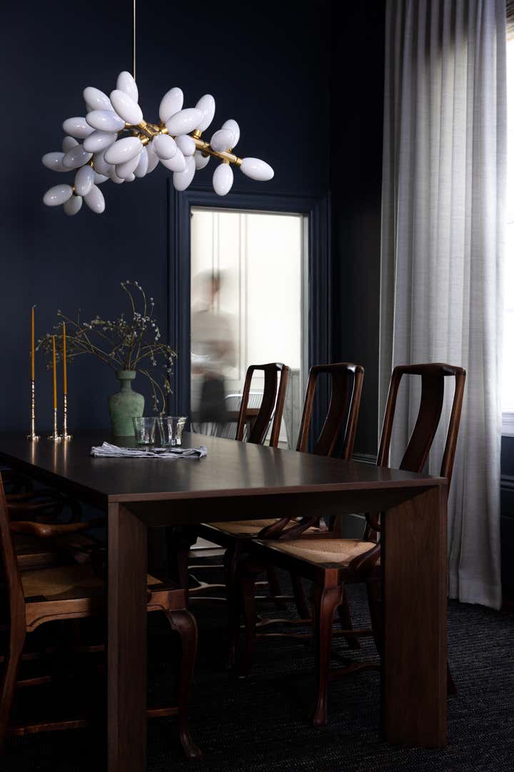 Tasked with updating a cherished family home while preserving its historical charm, we emphasized its elegant original details and introduced modern bohemian elements inspired by our fashion-forward client. We integrated the best of the client’s existing furniture collection, complementing it with a range of new and vintage pieces, including layered textiles, floor coverings, and modern lighting. The design is anchored by a moody kitchen and a perfect interplay of contemporary and beautifully-painted accents, reflecting both the home s legacy and the client s personal style.