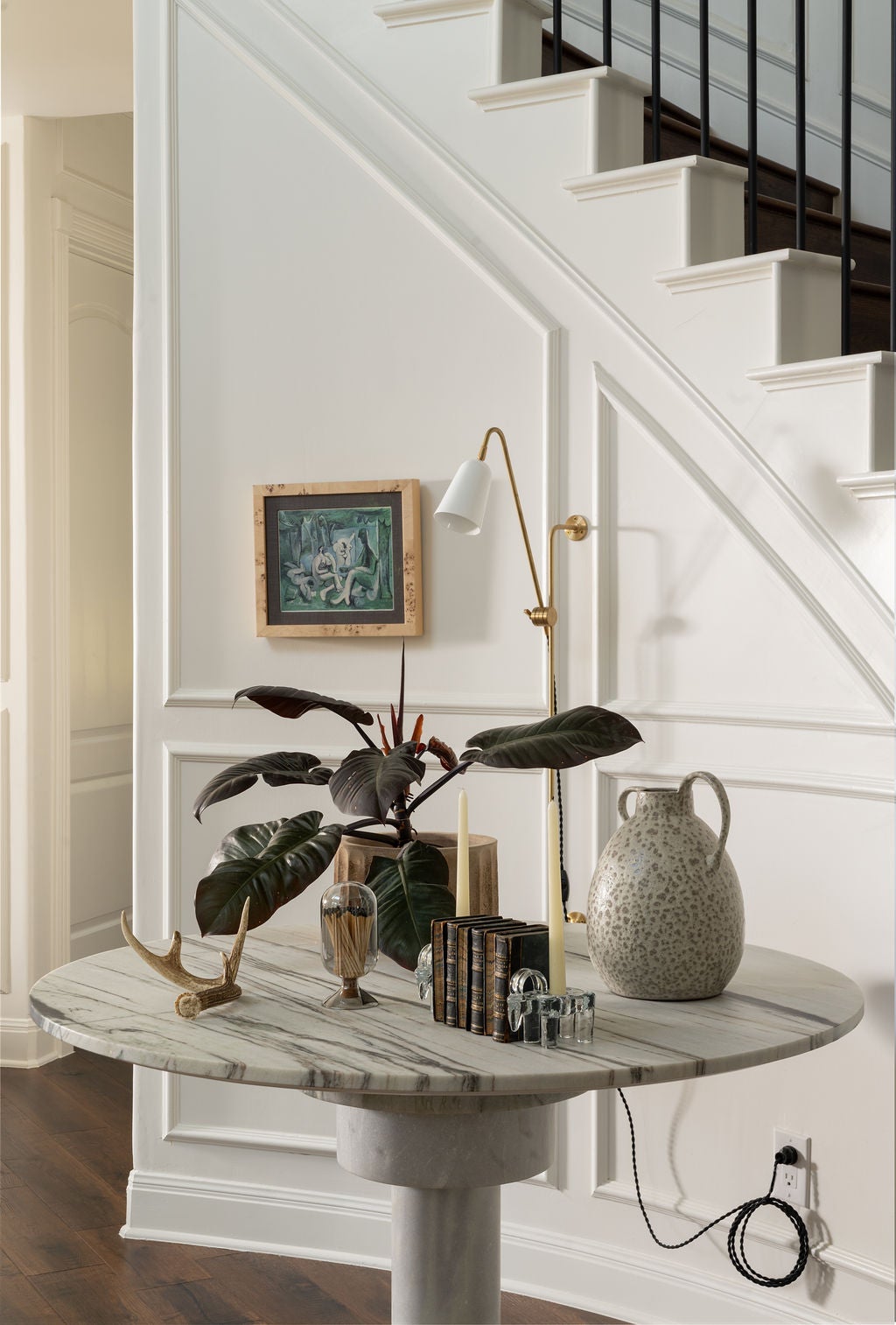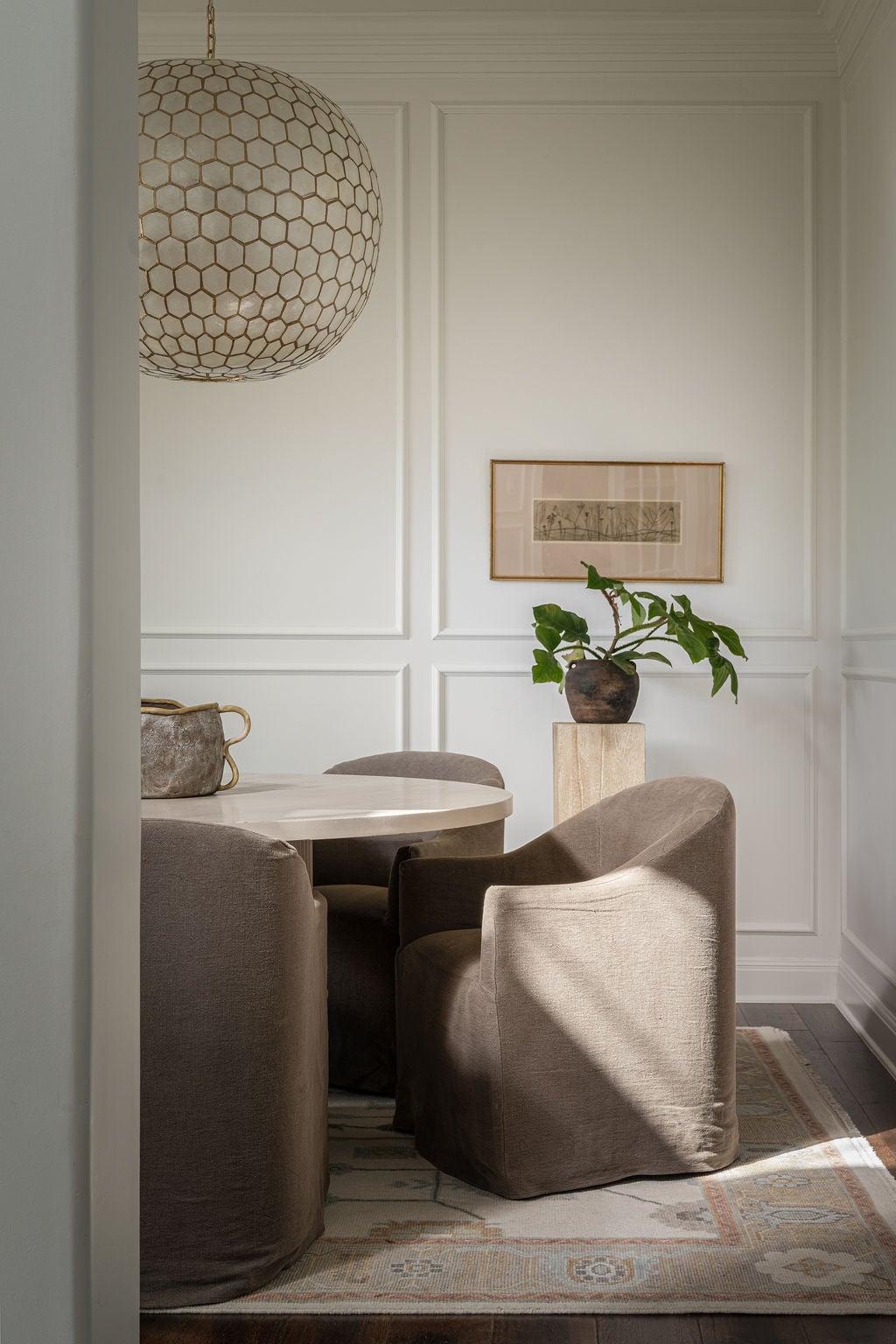 It’s the perfect blend: classic shell, contemporary soul. We layered in warm textures (hello, rust-colored chairs!) and striking moments of detail.