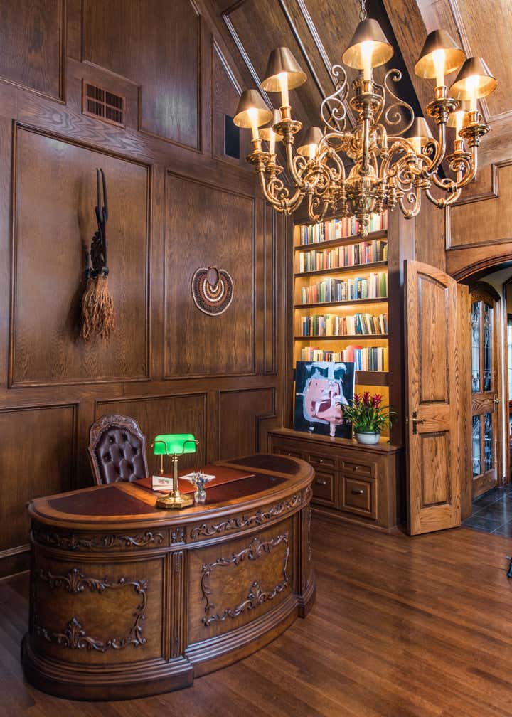 The library offers ample display for the homeowner s impressive collection of books, mineral specimens, and fine art. The focal point of the library, a massive oak paneled fireplace is original to the house. With the original oak mantle restored and a new stone slip and hearth, this room creates a richness further embodied by the American walnut floors.