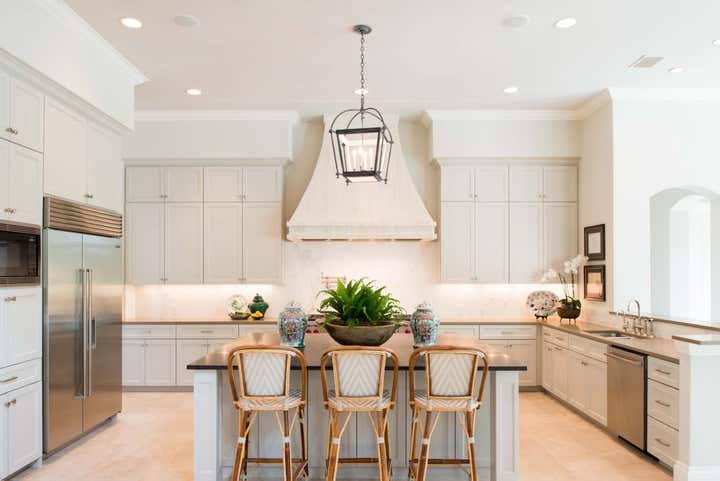 This new residence is located in one of San Antonio’s most established communities. The clients, a couple with teenage daughters, wanted an elegant and sophisticated home that could withstand the rigors of family life, constant entertaining and several dogs. We kept the strongly architectural spaces neutral and filled them with a freshly gathered collection of new, vintage, and antique furniture, fabrics, and decorative objects. The formality of the dining room’s English Regency table surrounded by Louis XVI style chairs, or the sitting room’s symmetrical arrangement of French Empire bergères and 18th century Italian gilt mirrors, is balanced by the ease of the den’s comfortable sofa and armchairs or the kitchen’s bluestone table and French bistro chairs.