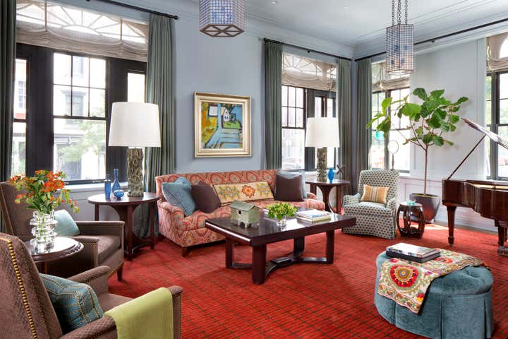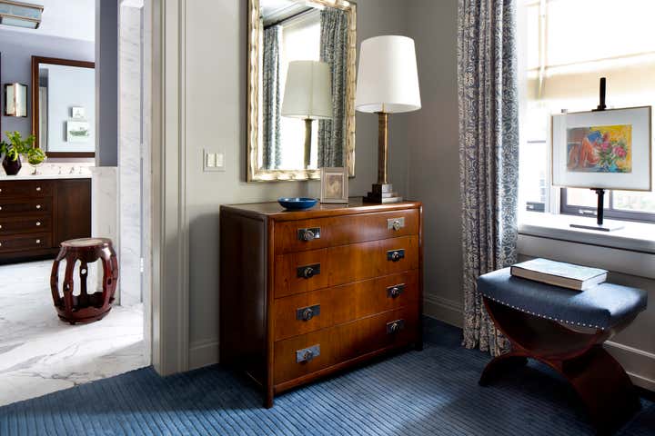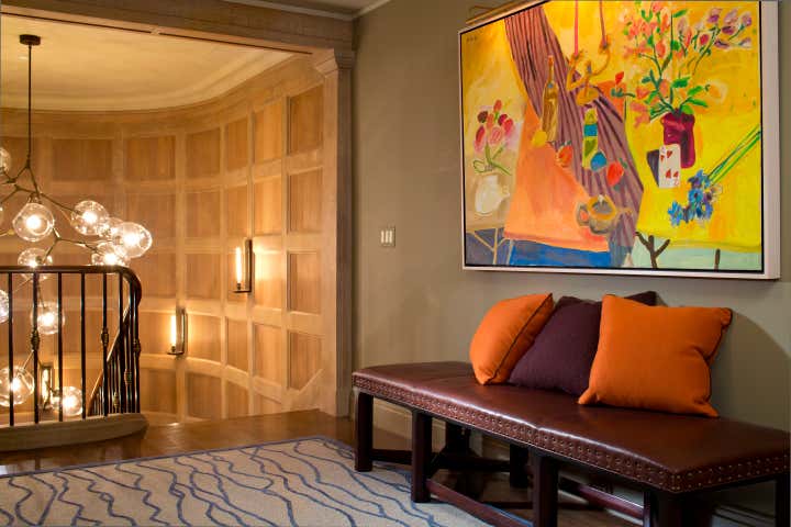 This grand-scale duplex apartment in a 1906 building was purchased as a raw space ready to create a home. Glenn Gissler Design was given the task of creating, essentially from scratch, a livable and happy space for a young family while connecting the design to the building’s past. Appropriately scaled architectural elements and moldings were added as well as a grand-scale curving stair. The furnishing and decoration were selected to be cheery and classic, yet strong and bold enough to hold up in these large-scale rooms.