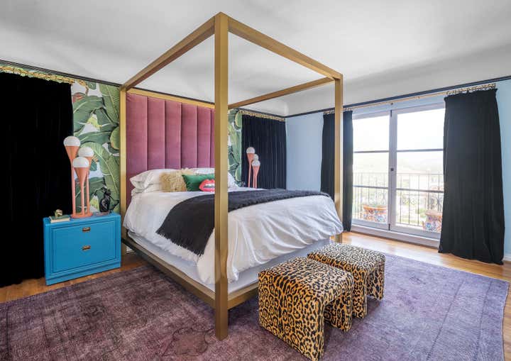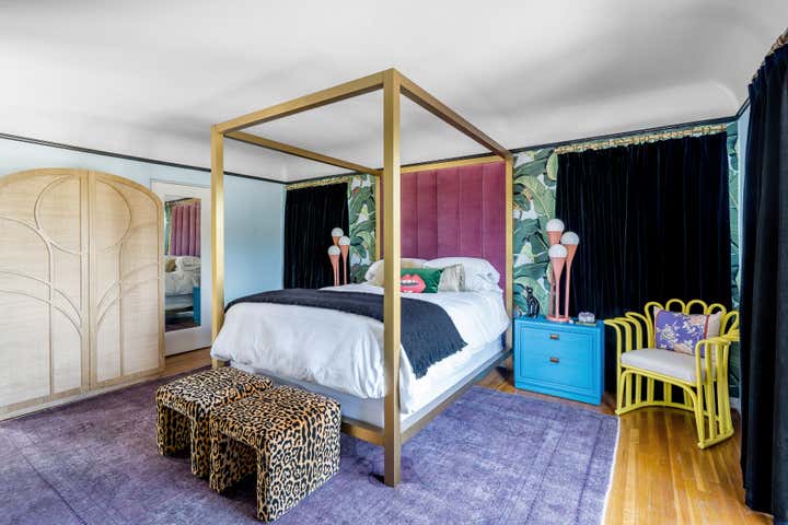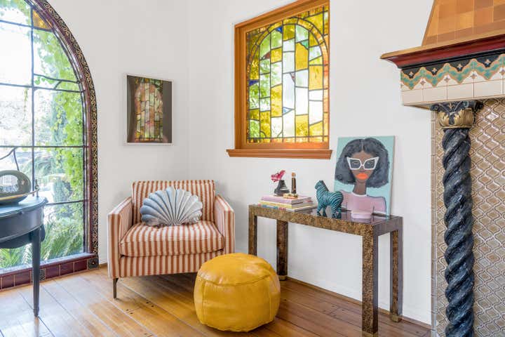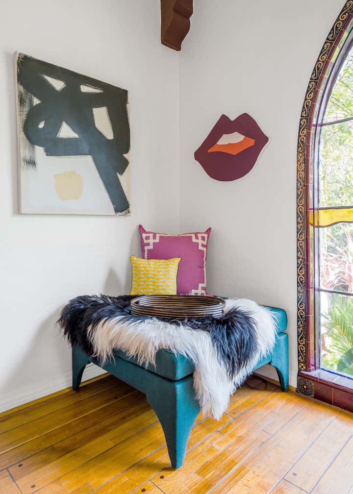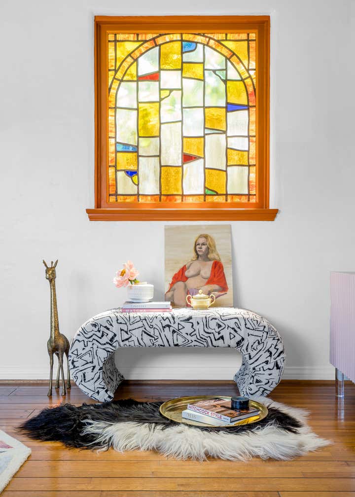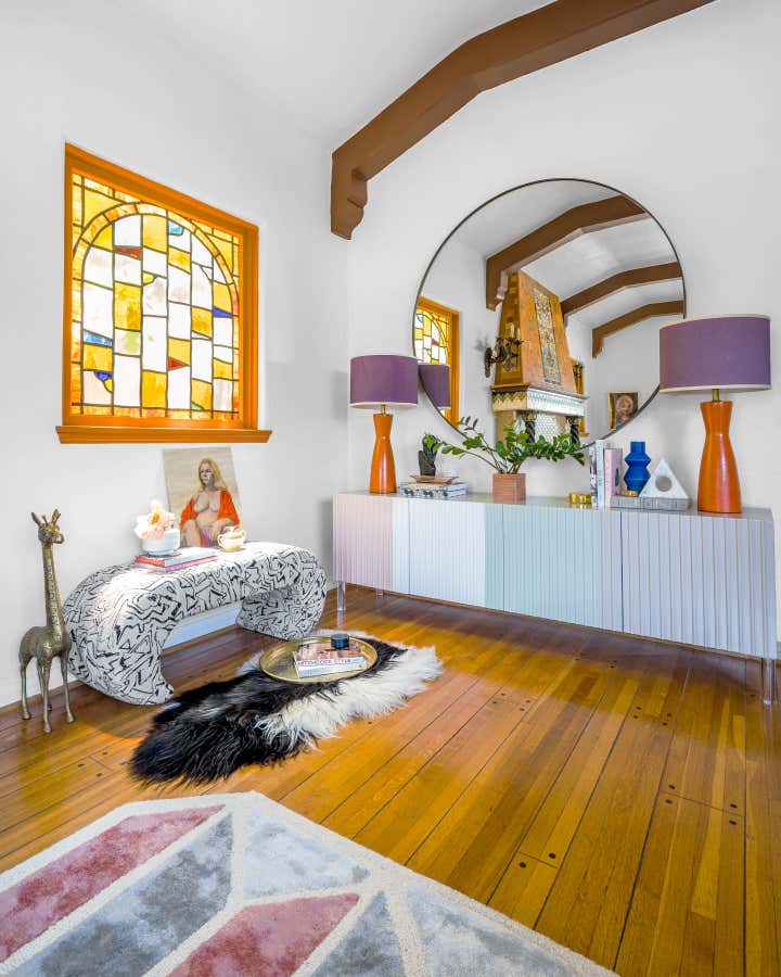 Our client fell for this enchanting 1930 s Spanish home in big part thanks to the beautiful bones. In an effort to preserve its inherent charm and Old Hollywood vibe while making it feel a little more millennial, she turned to BLD for some full-on decorating and light construction. We knew as soon as wet met the young comedienne what that would look like: a whimsical, fun-loving design scheme that was equal parts lighthearted leisure and drool-worthy glam. It wasn t all fun and games, though, since we had to introduce our client s personality to a home that had its own (very loud) opinions on these things. The previous homeowners had added quite a few unexpected elements to the interior that were tricky to design around - namely, the unusual, bright tiling throughout the home coupled with funky light fixtures. To make everything play nice together, we had to pull our color choices from the home itself and its super colorful tiling and stain glass windows. Oranges, yellows, reds, purples, and blues form the dynamic color palette while whimsical patterns, eclectic pairings, tons of vintage, and plenty of contrast are stamps straight from the client.