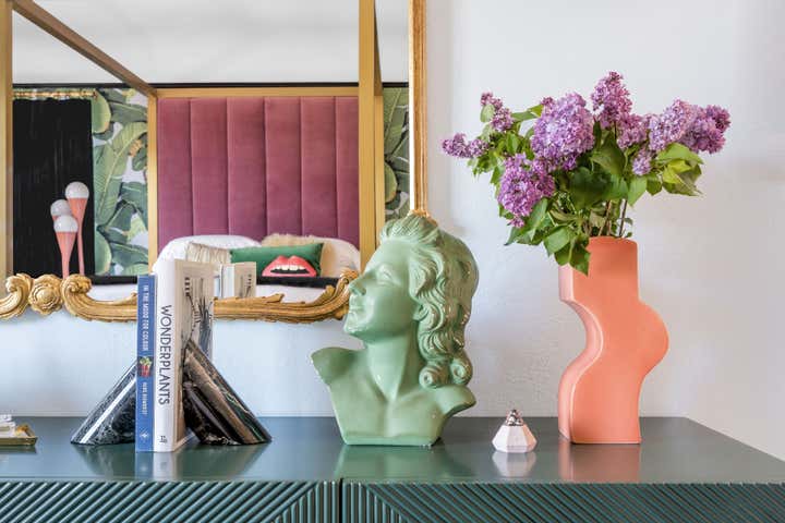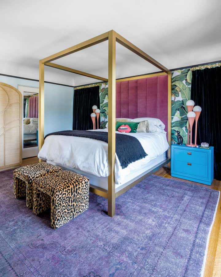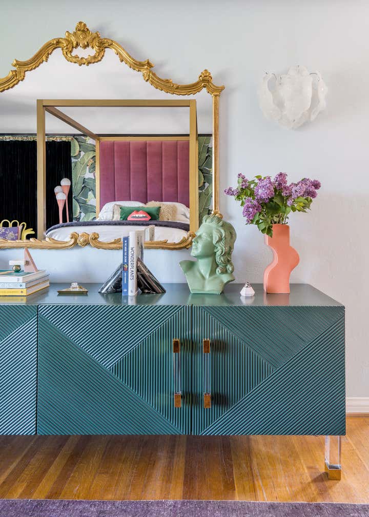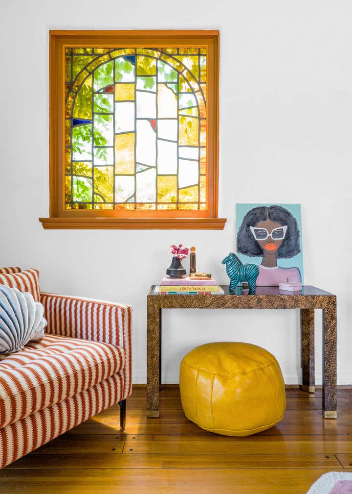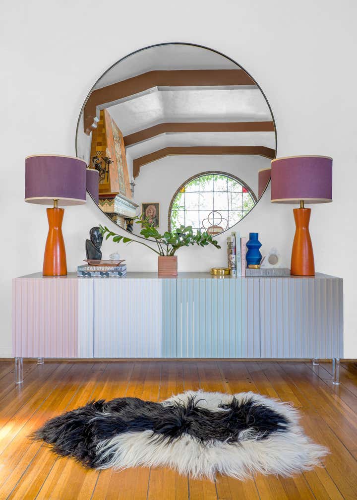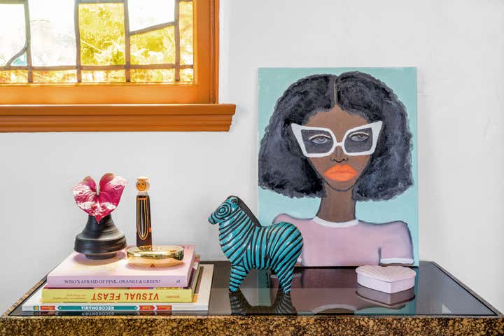 Our client fell for this enchanting 1930 s Spanish home in big part thanks to the beautiful bones. In an effort to preserve its inherent charm and Old Hollywood vibe while making it feel a little more millennial, she turned to BLD for some full-on decorating and light construction. We knew as soon as wet met the young comedienne what that would look like: a whimsical, fun-loving design scheme that was equal parts lighthearted leisure and drool-worthy glam. It wasn t all fun and games, though, since we had to introduce our client s personality to a home that had its own (very loud) opinions on these things. The previous homeowners had added quite a few unexpected elements to the interior that were tricky to design around - namely, the unusual, bright tiling throughout the home coupled with funky light fixtures. To make everything play nice together, we had to pull our color choices from the home itself and its super colorful tiling and stain glass windows. Oranges, yellows, reds, purples, and blues form the dynamic color palette while whimsical patterns, eclectic pairings, tons of vintage, and plenty of contrast are stamps straight from the client.