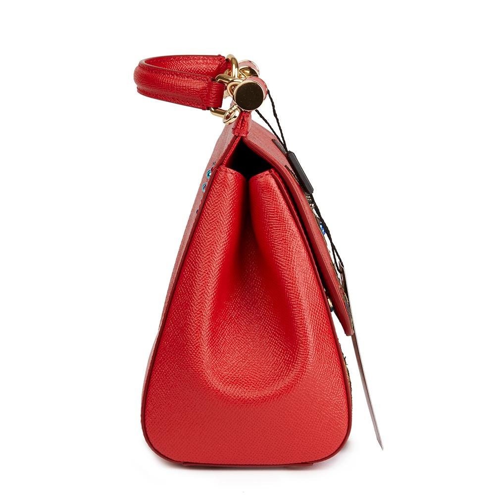 Gabbana Red Beaded Dauphine Leather DG Family Patch Medium Sicily, 2018