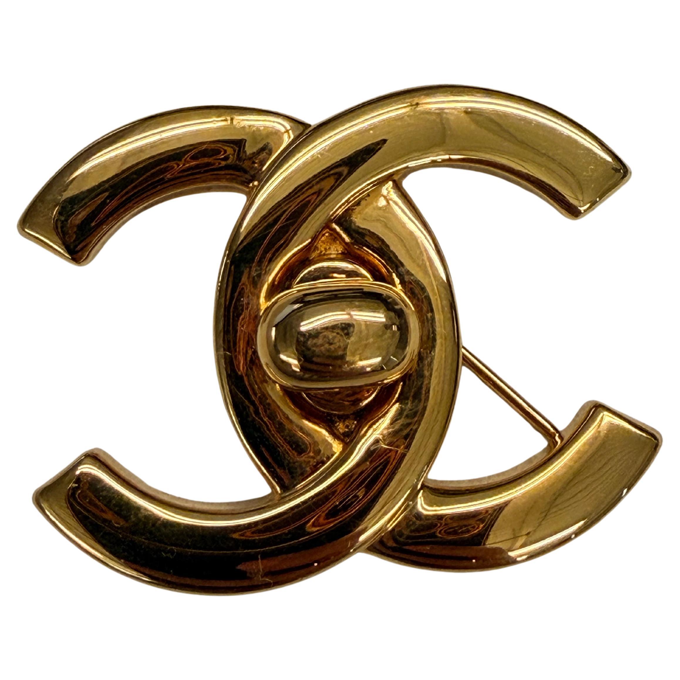 Chanel Vintage Gold Plated Crystal CC Brooch