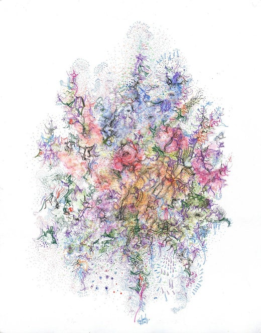 Aquarelle, encre, marqueur et crayon de couleur sur papier