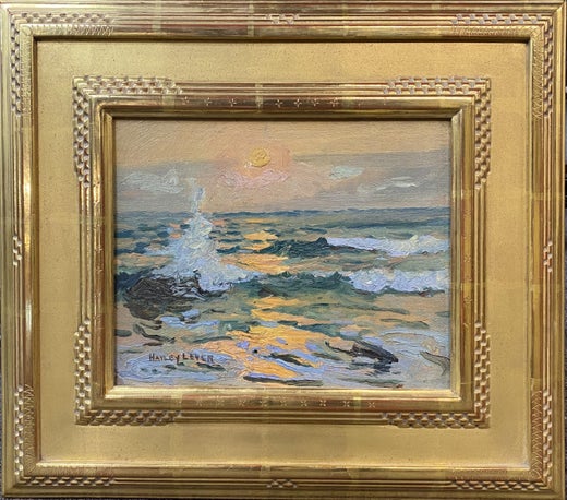 Hayley Lever est arrivée en Angleterre au début du siècle et a travaillé et étudié pendant quelques années avant de s'installer dans le village de St. Ives en Cornouailles, un pittoresque port de pêche du sud de l'Angleterre. Il est devenu un membre essentiel de la colonie d'artistes et a produit un vaste corpus d'œuvres, principalement des navires de pêche, des marines, des paysages marins et des scènes portuaires. Artiste prolifique, Lever a soumis ses œuvres à des concours en Angleterre, en France et même en Amérique, recevant plusieurs prix prestigieux. Il a également voyagé dans divers pays d'Europe, réalisant des croquis partout où il allait. Bon nombre de ses œuvres les plus fascinantes ont été réalisées dans le sud de l'Angleterre et dans les villages portuaires de Douarnenez et Concarneau en Bretagne, juste de l'autre côté de la Manche, à proximité de St. Des artistes américains se rendaient occasionnellement à St. Ives et Lever se lia d'amitié avec Ernest Lawson, qui admirait beaucoup son travail. Lawson persuade Lever d'émigrer en Amérique et il arrive à New York en 1912 avec sa famille. Eleg découvre bientôt la côte de la Nouvelle-Angleterre, où il commence à peindre les flottes de pêche de Gloucester et les élégants yachts de Marblehead, produisant des scènes qui deviennent populaires sur le marché de l'art new-yorkais. De grandes galeries telles que William Macbeth, Ferargil et Daniel and Rehn lui proposent des expositions, et il continue d'accumuler les récompenses, notamment une médaille d'or à l'Exposition internationale de Panama-Pacific, à San Francisco, en 1915. Le National Arts Club lui a décerné le titre de membre à vie et il a été élu membre de l'Académie nationale. De 1919 à 1931, Lever enseigne les cours de vie et la peinture de natures mortes à l'Art Students' League de New York. Dans les années 1920, il a également maintenu un studio d'été à Gloucester, à partir duquel il s'est rendu à Nantucket, Martha's Vineyard et dans les provinces maritimes canadiennes, produisant de nombreuses marines spectaculaires. Les peintures et aquarelles de Lever font partie de nombreuses collections de musées aux États-Unis, en Europe et en Australie, notamment le Metropolitan Museum de New York, la Phillips Memorial Gallery à Washington, DC, et la Sydney Art Gallery, en Australie.