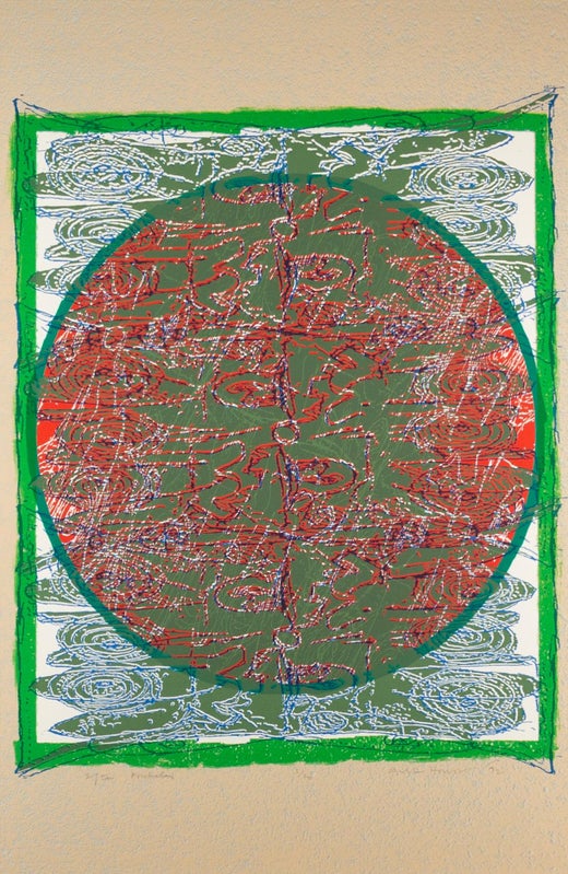 Sérigraphie géométrique abstraite en soie de Jimmy Ernst