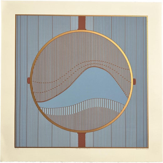 Sharon Egretta Sutton, est une architecte, éducatrice, artiste visuelle et auteur américaine. Son travail est axé sur la recherche et la conception participatives basées sur la communauté. Elle est professeur émérite à l'université de Washington. Dans une peinture ou une gravure, l'élément habituellement stable est le cadre, mais dans ce cas-ci, il se déplace et glisse comme une maçonnerie délogée. La distorsion des ovales qui se transforment en cercles lorsque l'on se déplace à gauche ou à droite devant sa lithographie, les surfaces réfléchies en or et le cadre changeant, les fonds concaves et les disques à motifs plats confirment à nouveau l'instabilité et l'insécurité de la perception des objets matériels, l'illusion de la lumière et du mouvement. À cet égard, il s'agit d'une peinture spirituelle, qui déclare la réalité des intangibles et l'omniprésence de l'énergie et de la lumière. Sharon Sutton est une chercheuse, une auteure, une artiste et une conférencière de renom. Ses œuvres d'art ont été exposées et collectionnées par des galeries, des musées, des entreprises et des universités dans toute l'Amérique. Elle a été intronisée au Michigan's Women's Hall of Fame of Life Achievements (Temple de la renommée des femmes ayant accompli leur vie).