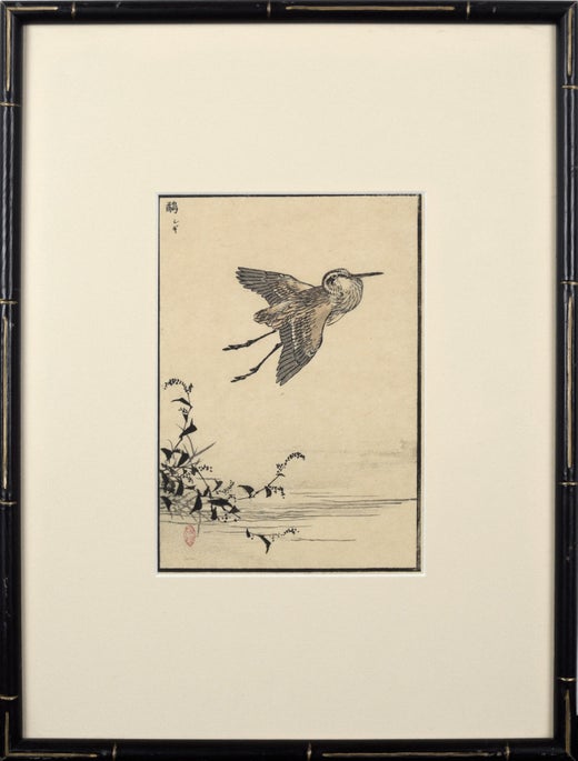Kono BaireiGravure sur bois japonaise ancienne - Échassier en vol1881
