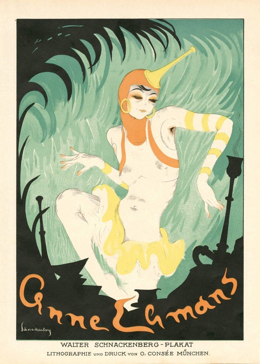 Schnackenberg contribue régulièrement à des compositions similaires dans les magazines allemands Jugend et Simplicissimus avant de se consacrer à la conception de décors et de costumes de théâtre. Dans l'œuvre théâtrale de l'artiste, sa maîtrise de la forme, de l'ornementation et de l'orientalisme devient de plus en plus évidente. Il excellait dans l'art de combiner les contours fluides Art Nouveau avec des passages expressifs Expressionnistes et les postures et motifs de l'Orient mystérieux.