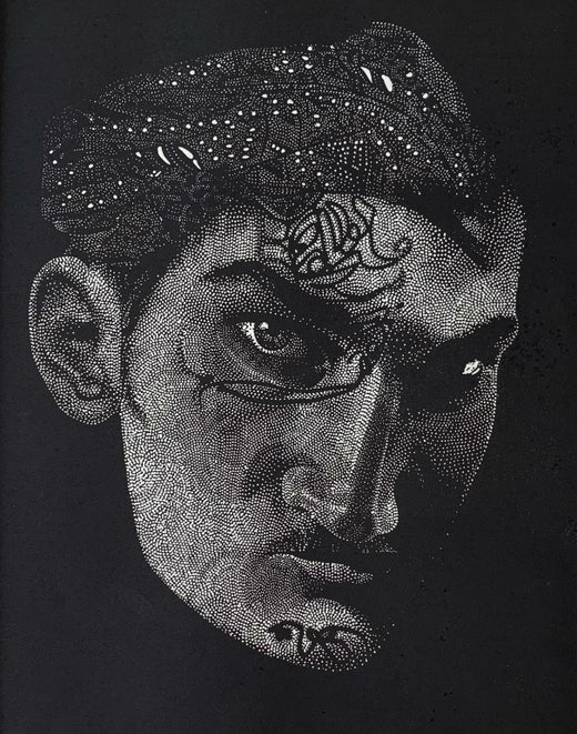 Incarnation 8. Jeune artiste, Estampe figurative Linogravure, Noir et blanc, Art polonais