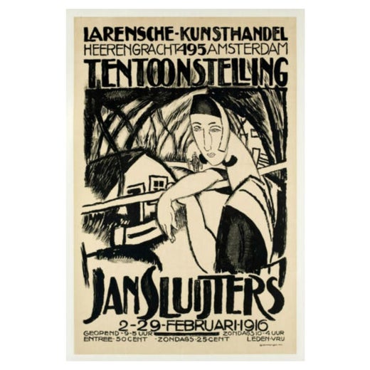Jan Sluijters (ou Sluyters) est né le 17 décembre 1881 aux Pays-Bas. Il commence ses études à l'Académie des beaux-arts d'Amsterdam en 1896. Entre 1904 et 1905, il se rend à Paris. Il a été influencé par les peintres néo-impressionnistes, notamment Vincent van Gogh, et plus tard par Paul Gauguin et Henri Matisse. Ses œuvres, qui comprennent des portraits, des paysages, des natures mortes et des nus, se distinguent par des couleurs vives, des formes dynamiques et de larges coups de pinceau énergiques. Toutes ces qualités se retrouvent dans cette lithographie-affiche. Sluijters a révélé ses vues humanistes et sa sensibilité aux contradictions de la vie avec une force particulière dans ses portraits et dans le tableau Peasants of Staphorst (1917, Municipal Museum, Amsterdam). Il est décédé le 8 mai 1957.