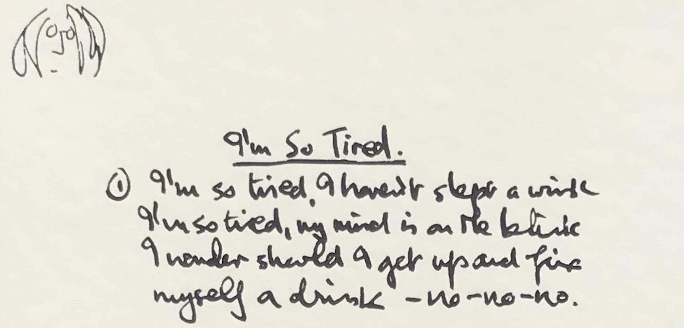 Rare sérigraphie en édition limitée des paroles manuscrites de John Lennon pour la chanson "Nowhere Man", publiée pour la première fois sur "Revolver" par le groupe... Les Beatles ...