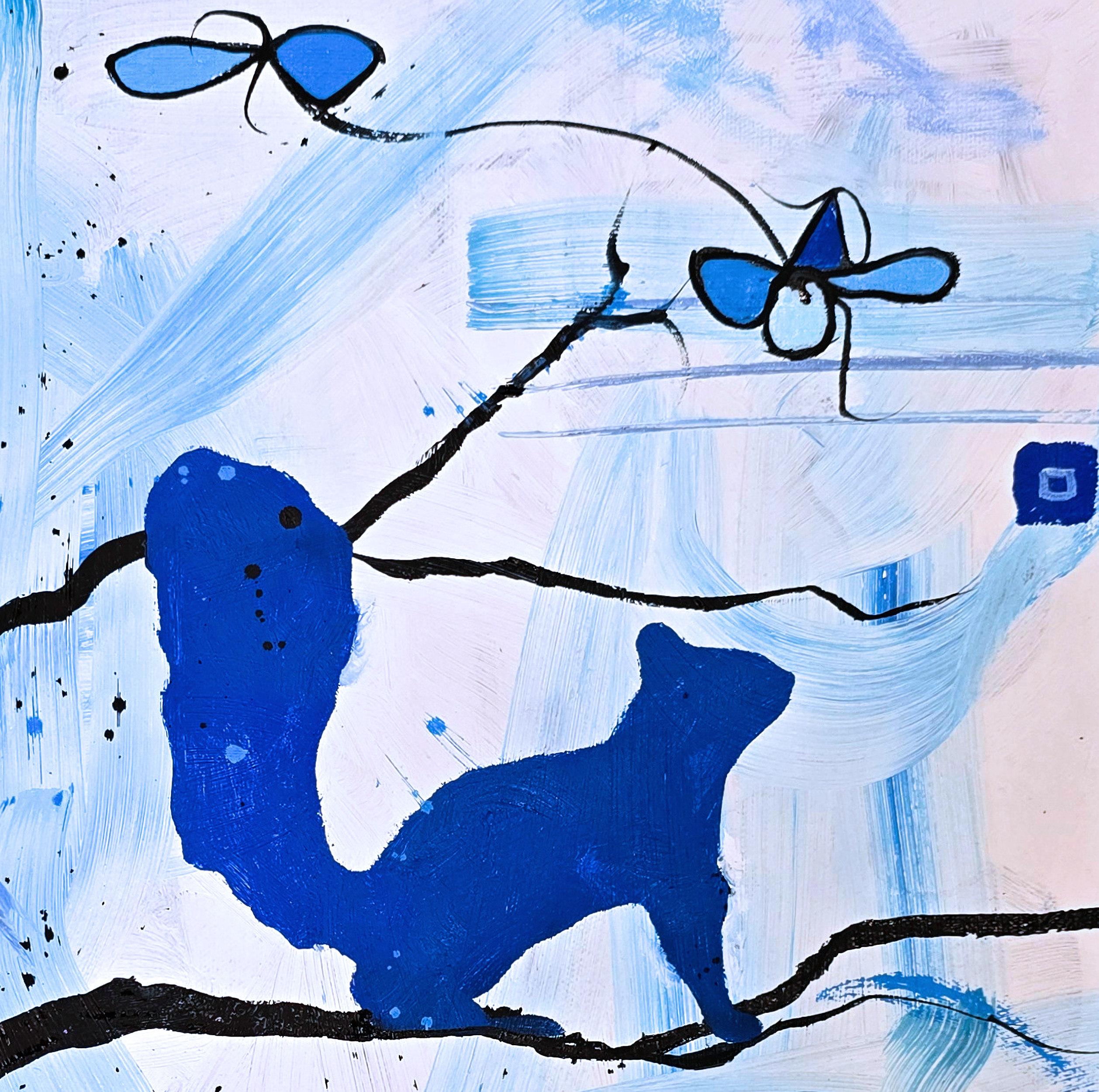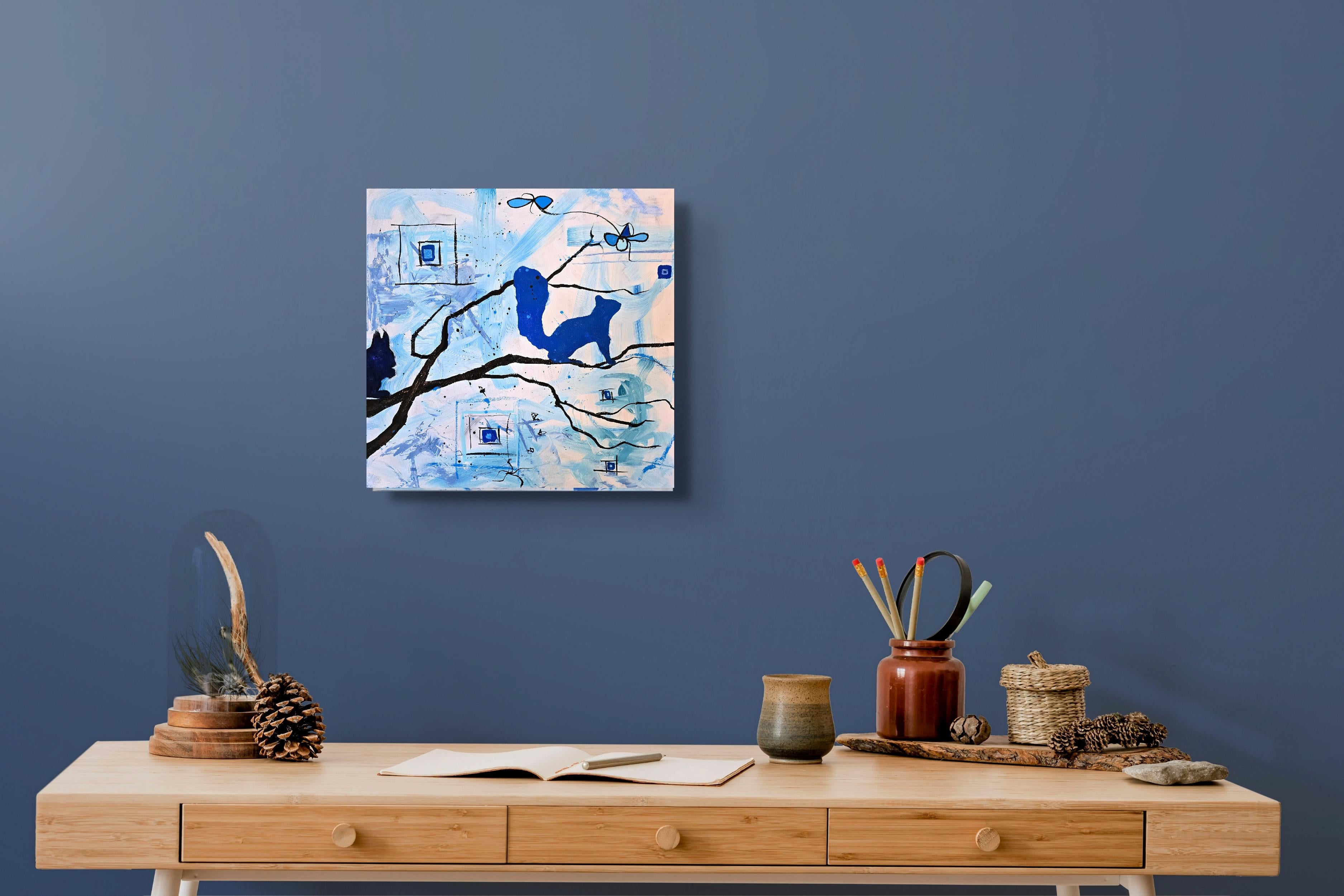Anita Loomis"Écureuils 2", Abstrait, Silhouette, Bleu, Peinture à l
