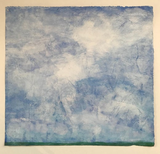 Le jeu intuitif avec la couleur - verser, dégouliner, appliquer à la truelle, essuyer et superposer la peinture - est l'action du processus de peinture qui a donné naissance aux pièces de la "carte spirituelle". Cet ensemble de travaux se situe à l'intersection de l'intuition, du processus et de la réflexion. Les pièces de cette série évoluent comme un processus d'appel et de réponse. Les images sont filtrées par la mémoire, les sentiments, les idées et les matériaux. Ils expriment un sentiment de crainte et d'émerveillement souvent suscité par la surprise ou par des moments éphémères de beauté. Dans cette série, la figuration et l'abstraction coexistent, comme la danse de l'étincelle et de la flamme, du concept et de la forme - de multiples façons de parler de la même idée - décrivent la lumière, articulent la sensation d'un lieu ou d'un moment. L'intention de ces peintures est de refléter la beauté et d'être une fenêtre pour l'esprit.