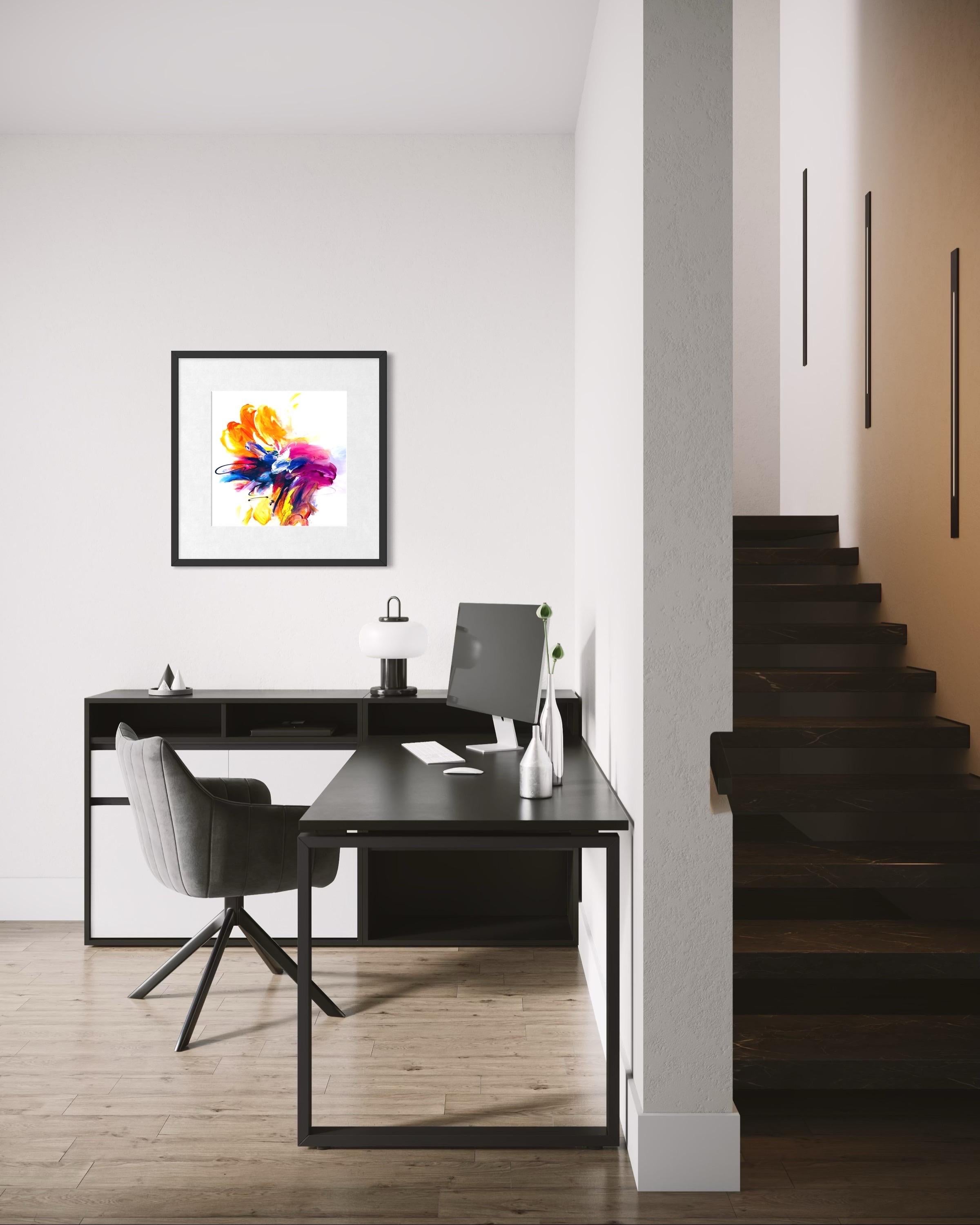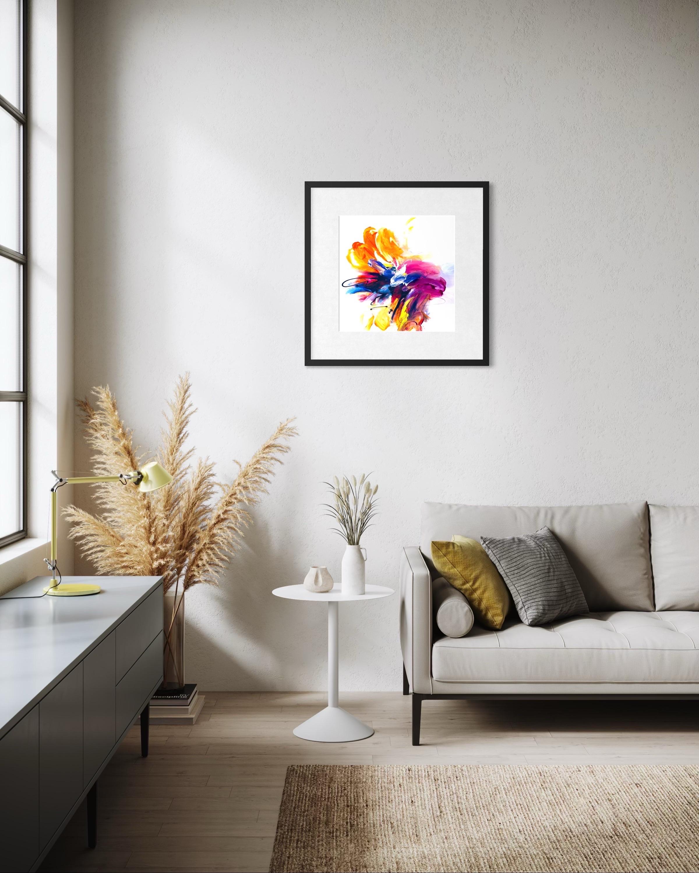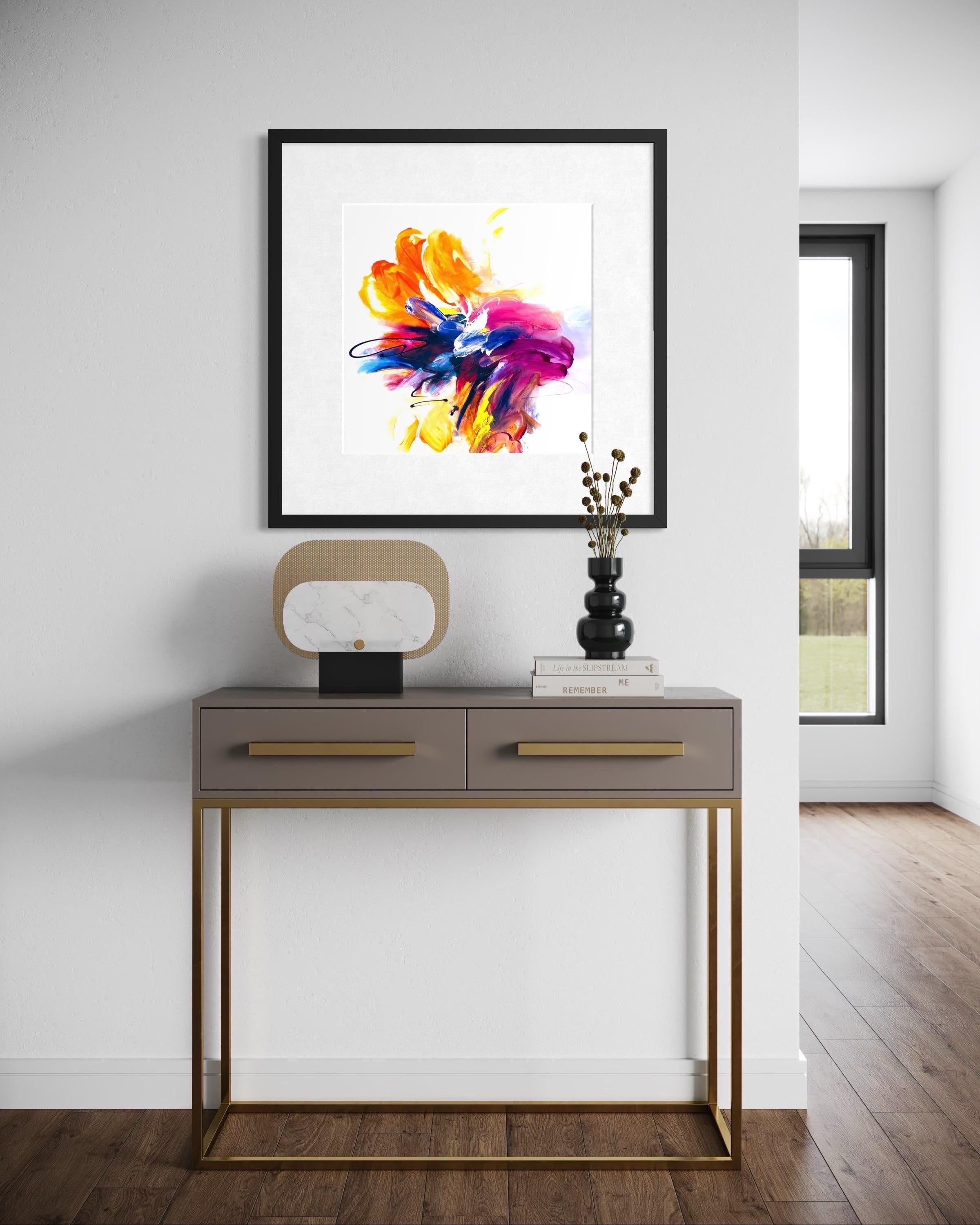 "Arrested Love" capture la beauté volatile d'une émotion en pleine floraison - un moment où la passion, la tendresse et la retenue coexistent dans une tension lumineuse. Des éclats de fuchsia, de cobalt, d'or et de cramoisi profond s'entrechoquent dans un tourbillon rythmique de couleurs, d'énergie et de mouvement suspendu.
