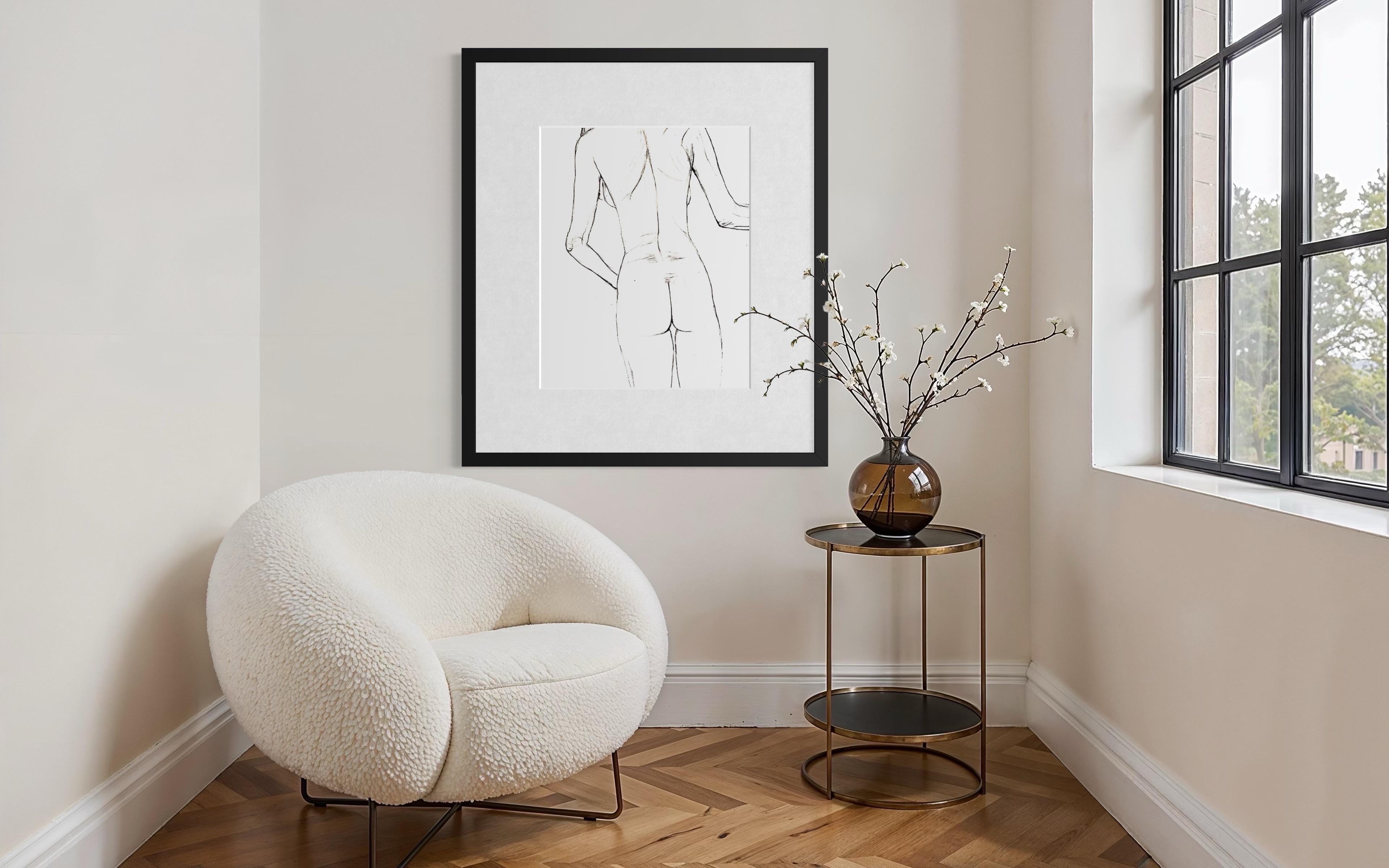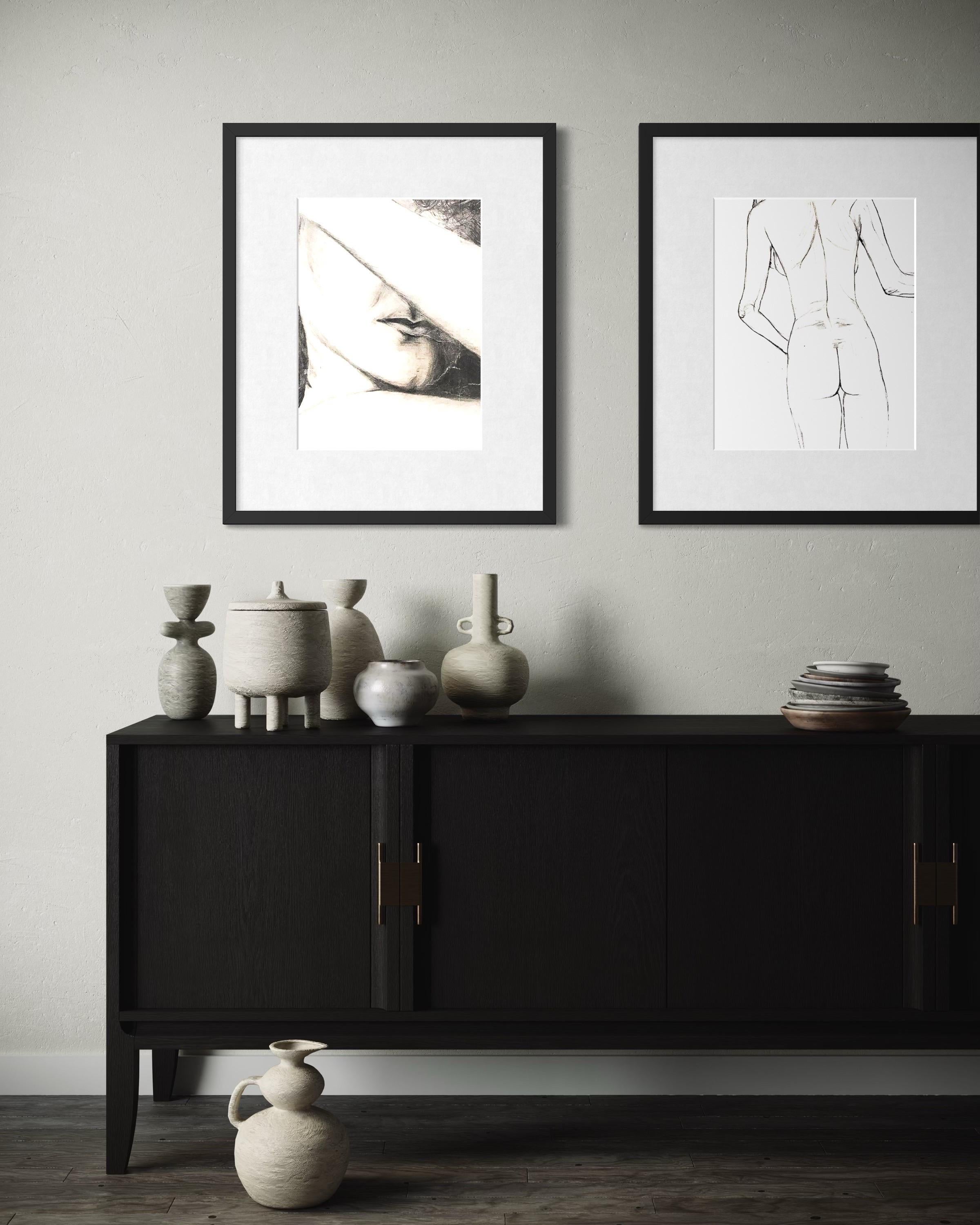 "Study in Grace III" est un portrait intime au graphite qui rend hommage à l'éloquence tranquille de la forme humaine - une méditation sur la beauté, la mémoire et le temps. Dessinée...