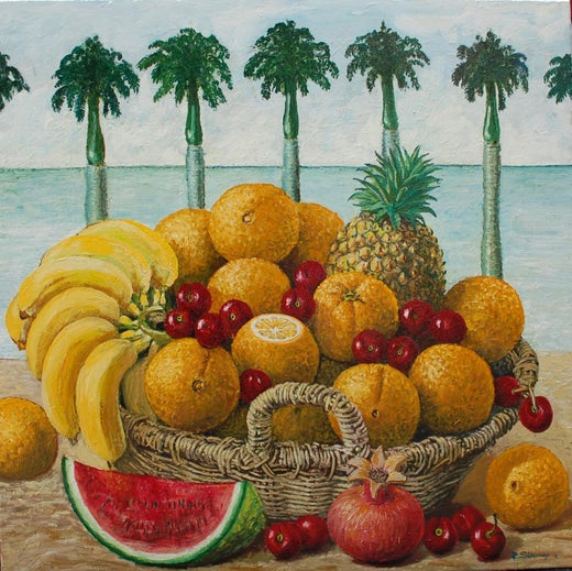 L'artiste Rafael Saldarriaga met en lumière des éléments de son pays natal, la Colombie, par le biais de natures mortes lumineuses et portraits figuratifs aux tons plus sombres. Qu'il s'agisse de capturer un bol d'oranges avec une clarté réaliste ou de dépeindre un panier de pommes d'un autre monde sur une table avec pour toile de fond une prairie sèche, Saldarriaga crée des œuvres d'une essence unique.