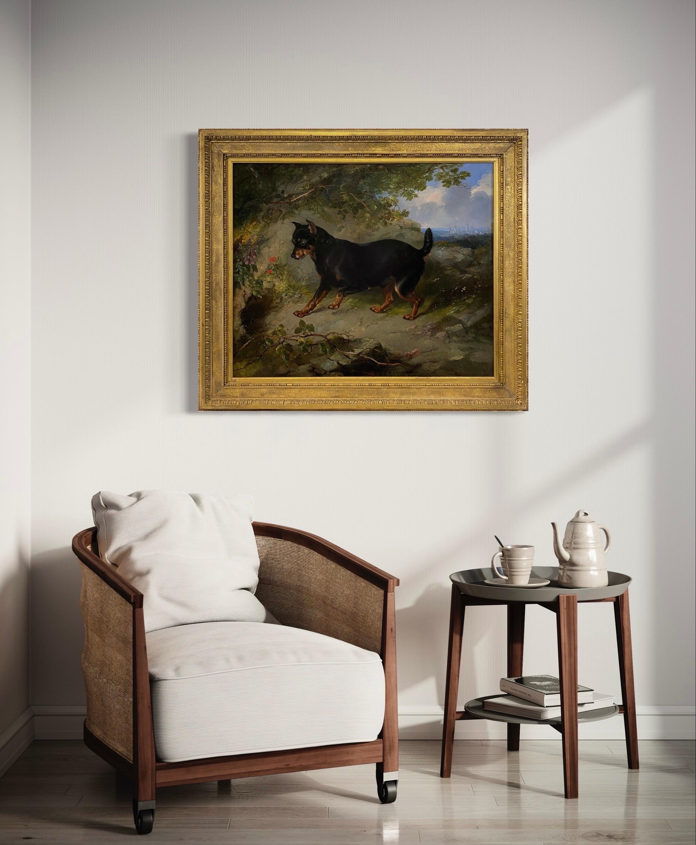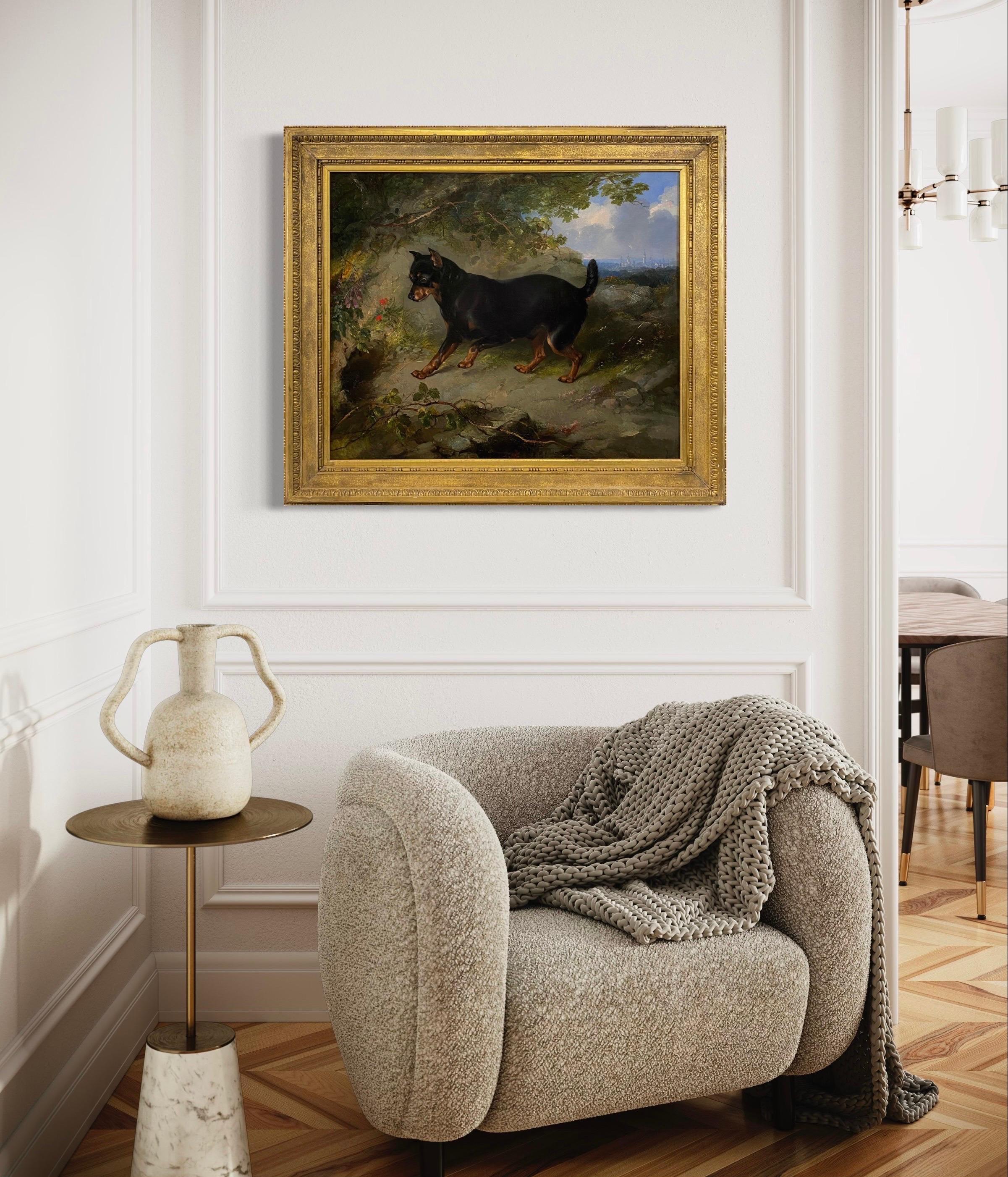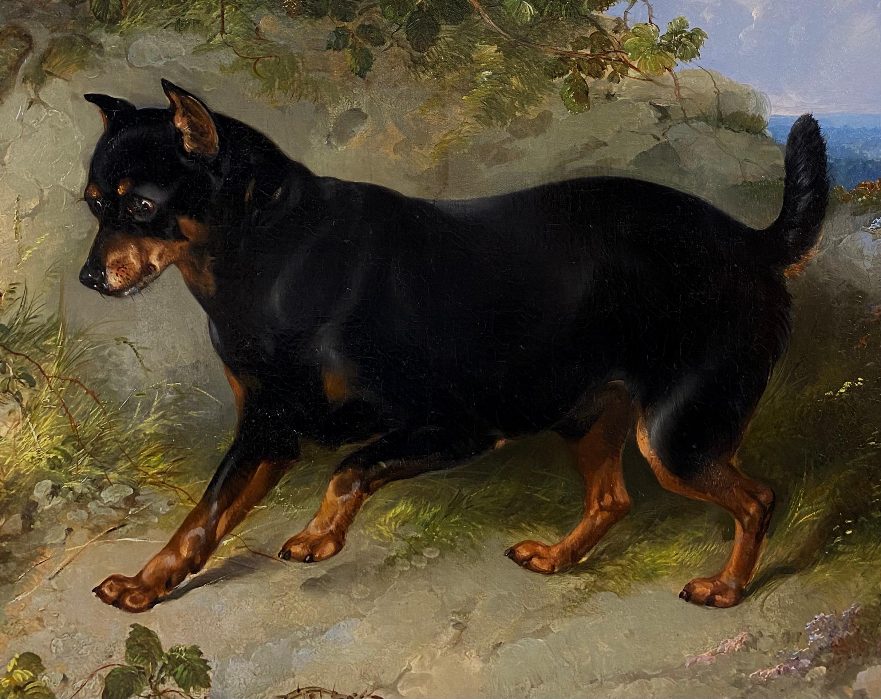 George Armfield"Manchester Terrier, 1854" Portrait de chien dans un paysage A.I.C. Ex-Bonhams Huile1854