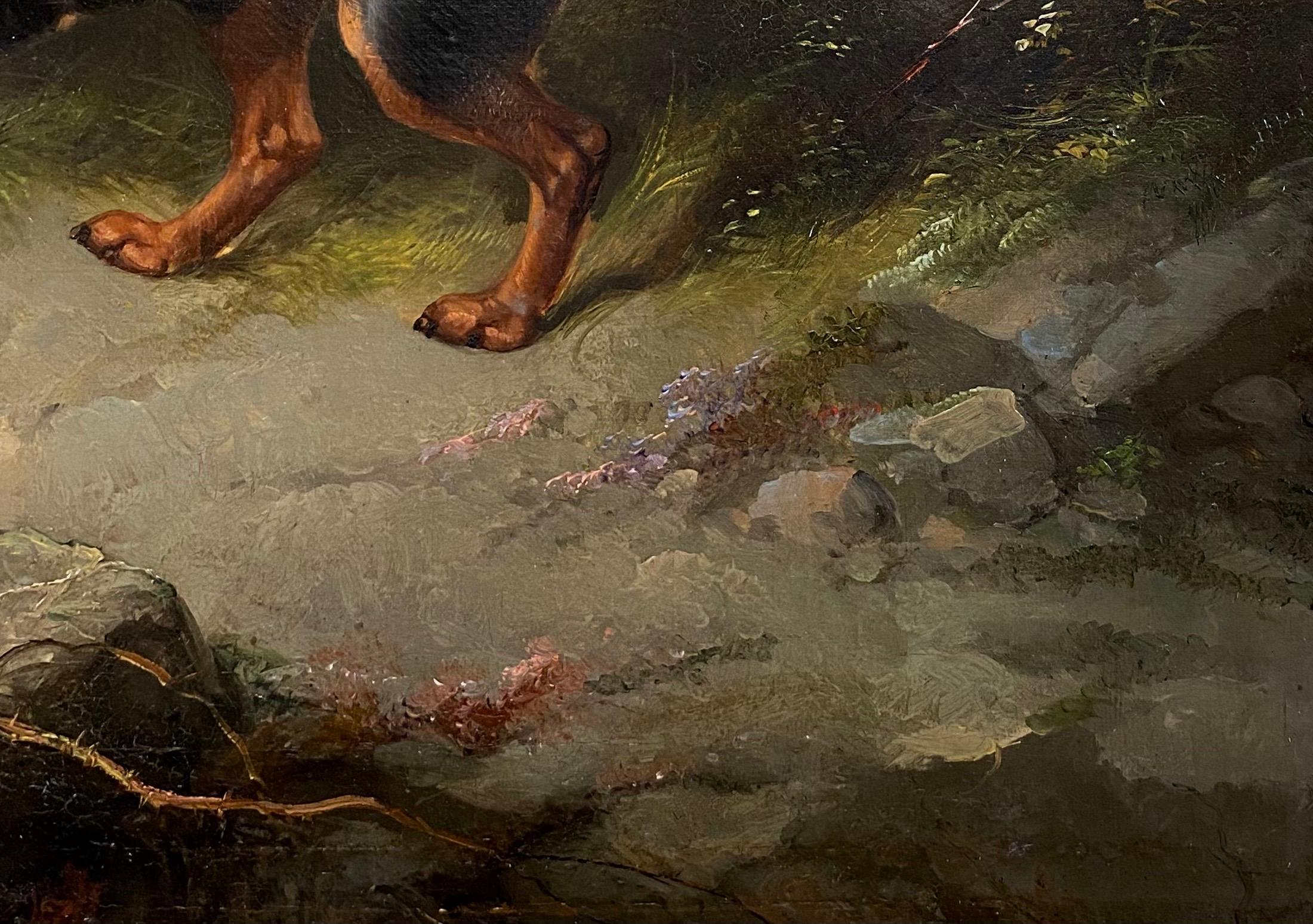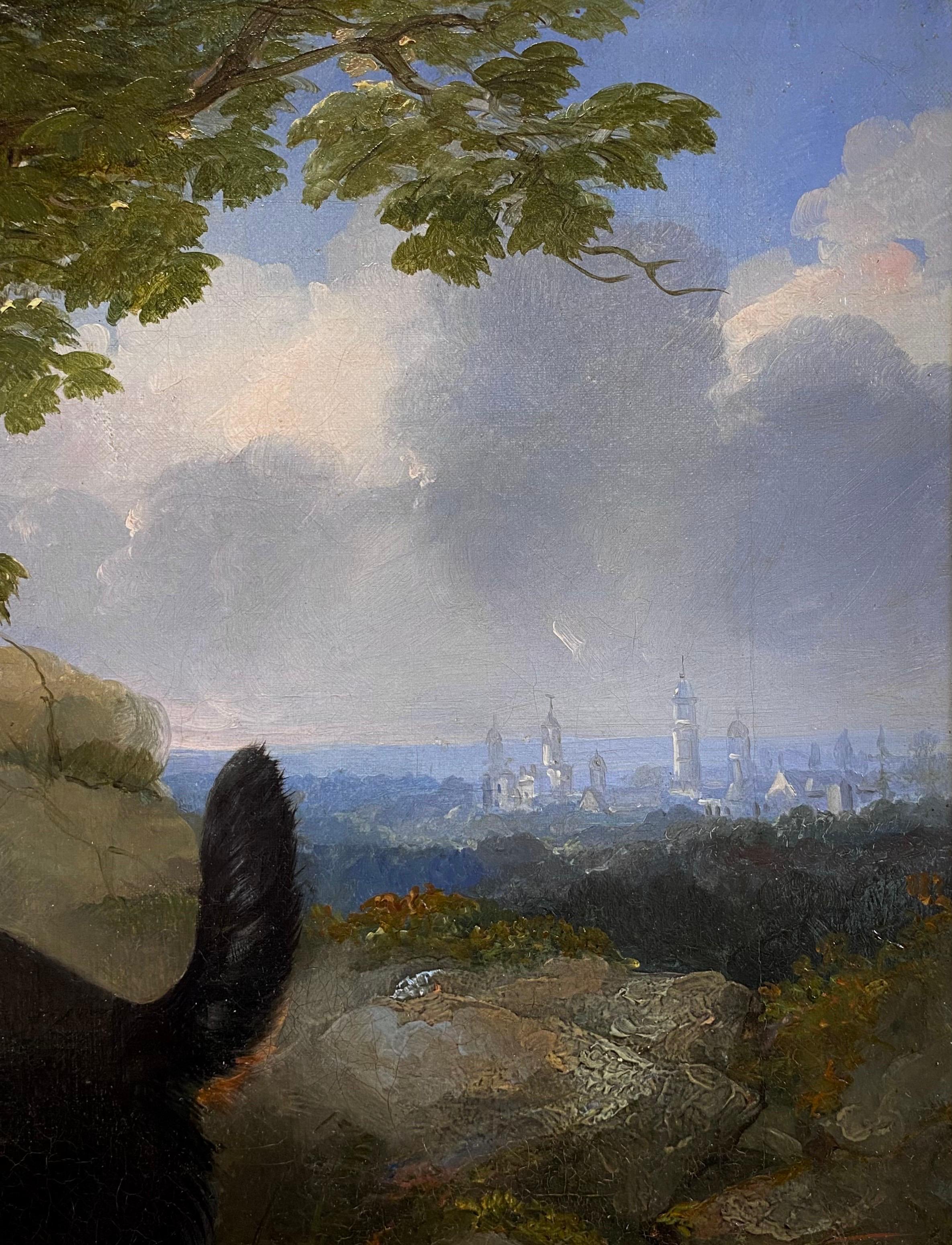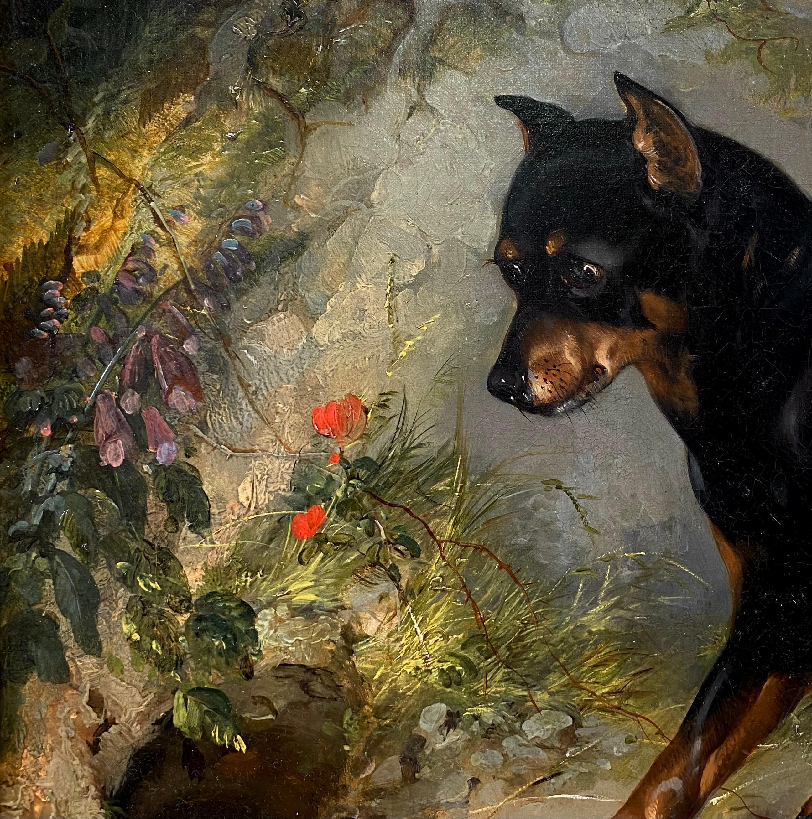 George Armfield"Manchester Terrier, 1854" Portrait de chien dans un paysage A.I.C. Ex-Bonhams Huile1854